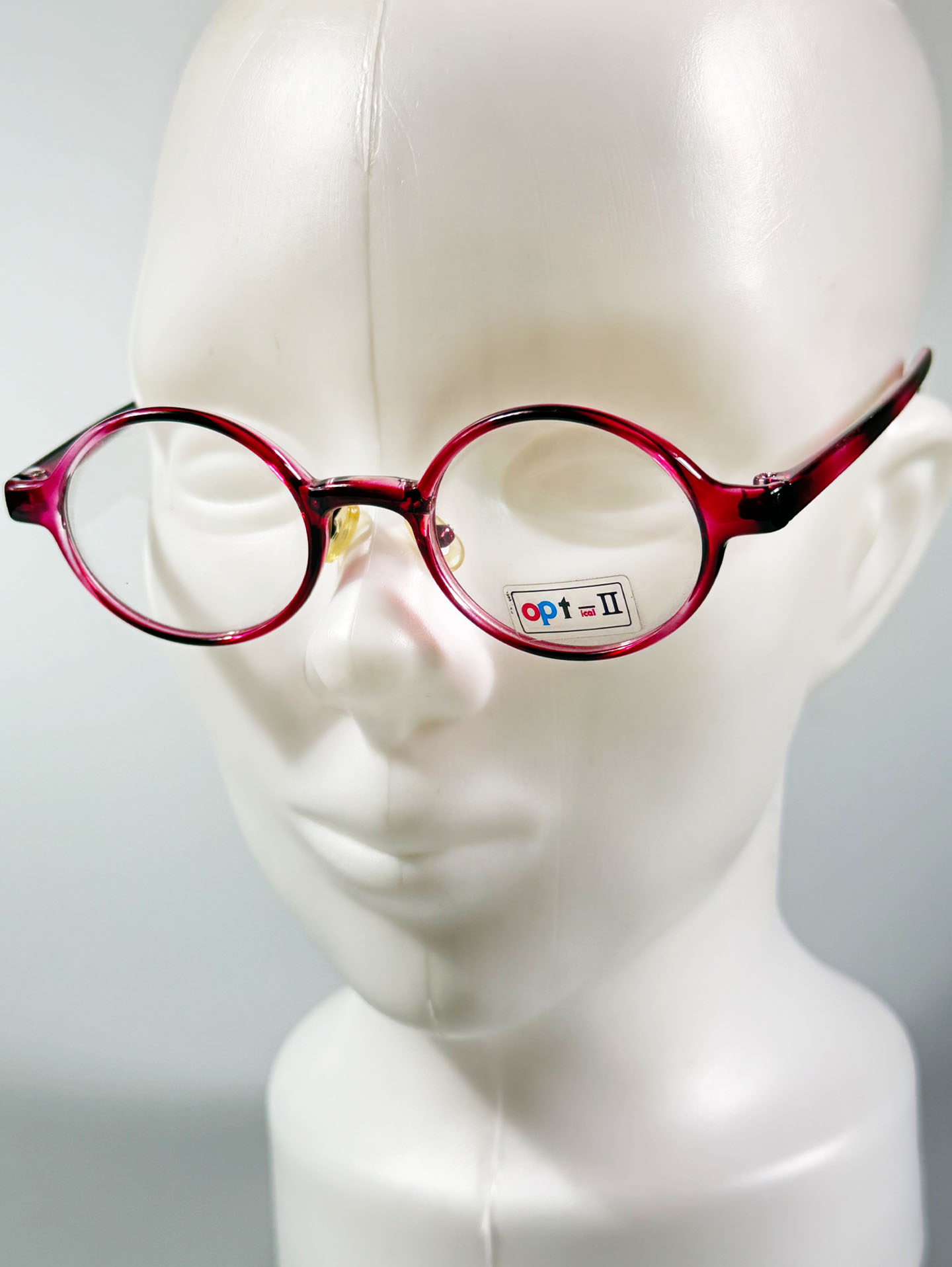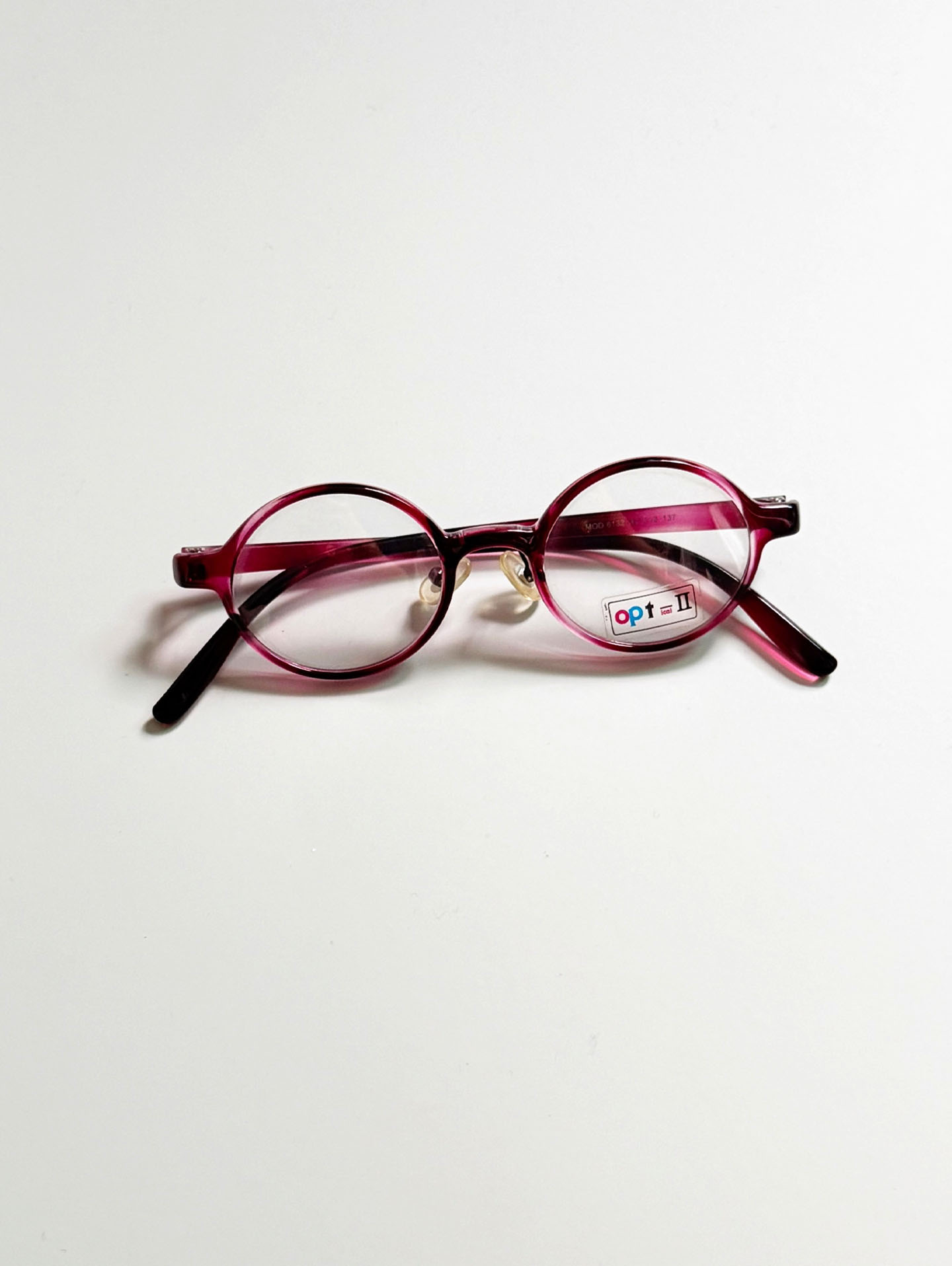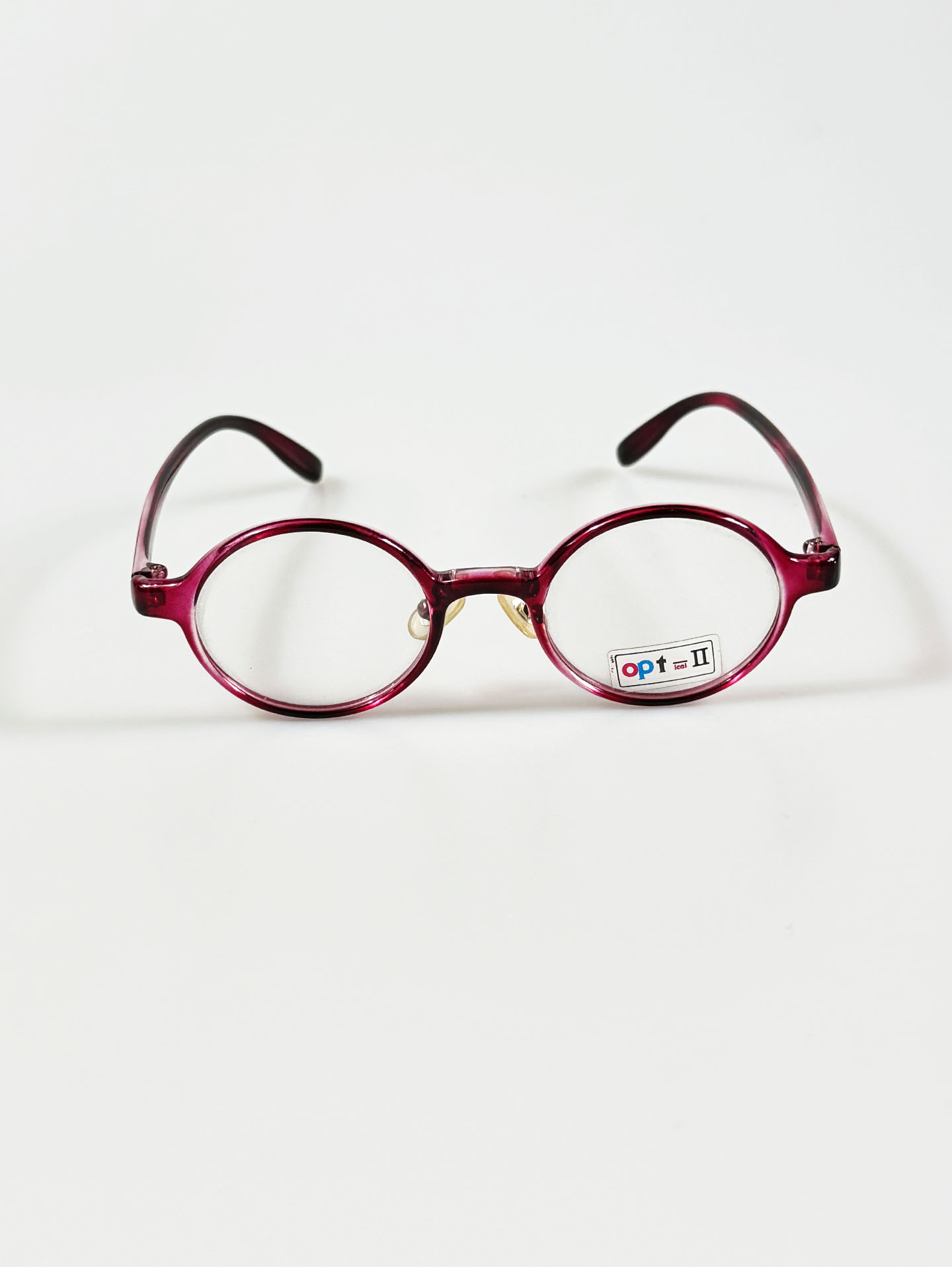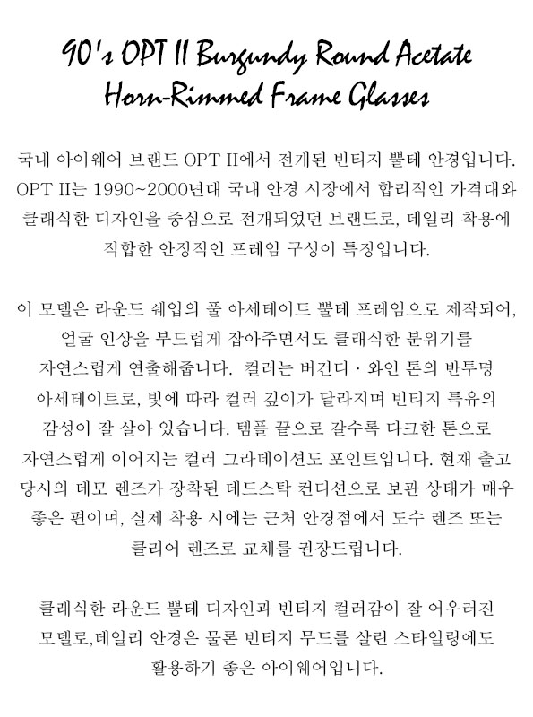 90's OPT II Burgundy Round Acetate Horn-Rimmed Frame Glasses
