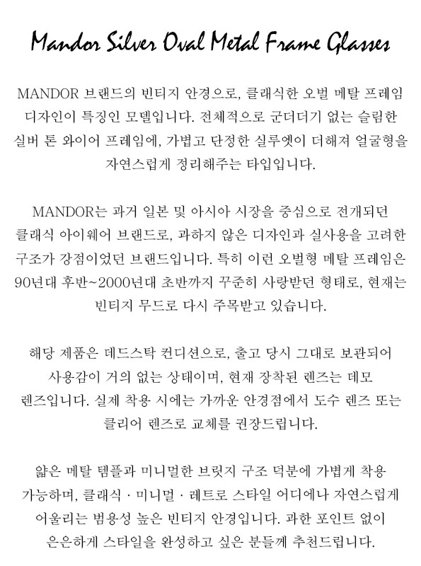 - 가급적이면 꼼꼼히 검수해서 설명 드리고 있지만 빈티지 제품 특성 상 저희가 발견하지 못한 오염이나 하자가 있을 수 있으니 상태에 민감하신 분들은 신중한 구매 부탁 드립니다.