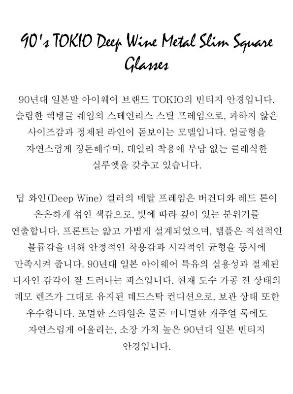 90's TOKIO Deep Wine Metal Slim Square Glasses