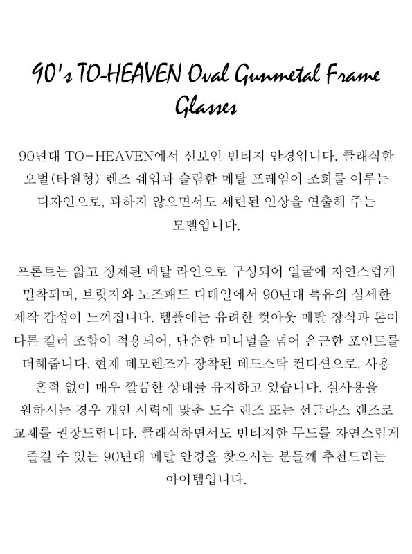 90's TO-HEAVEN Oval Gunmetal Frame Glasses