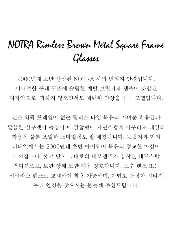 NOTRA Rimless Brown Metal Square Frame Glasses