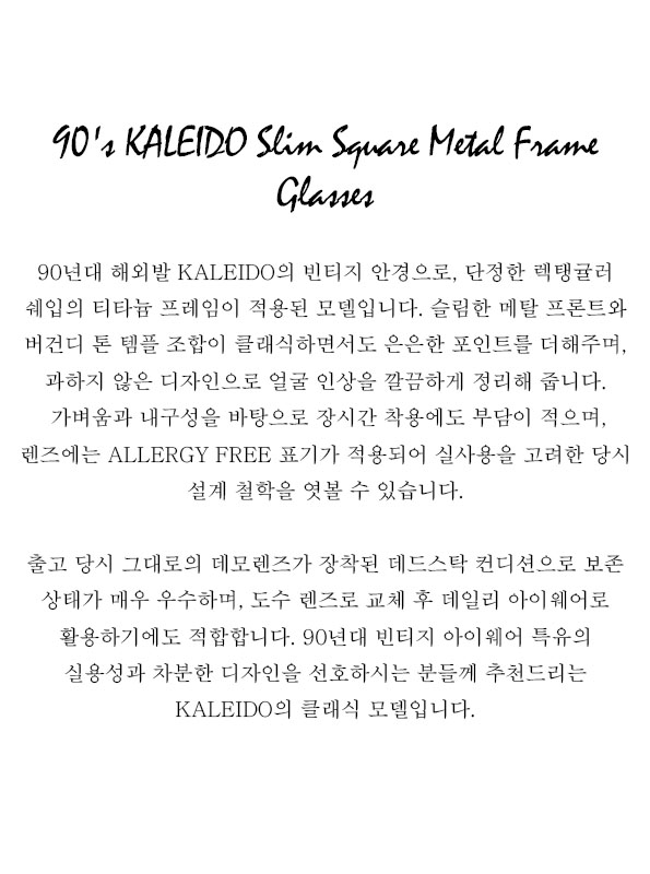 90's KALEIDO Slim Square Metal Frame Glasses