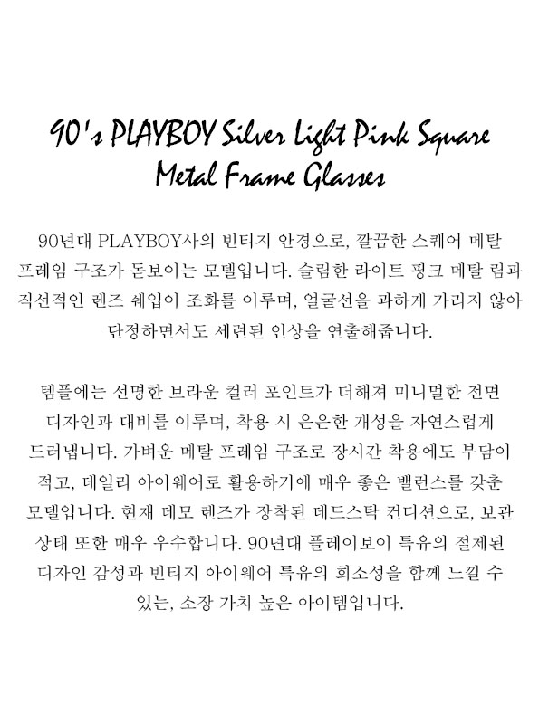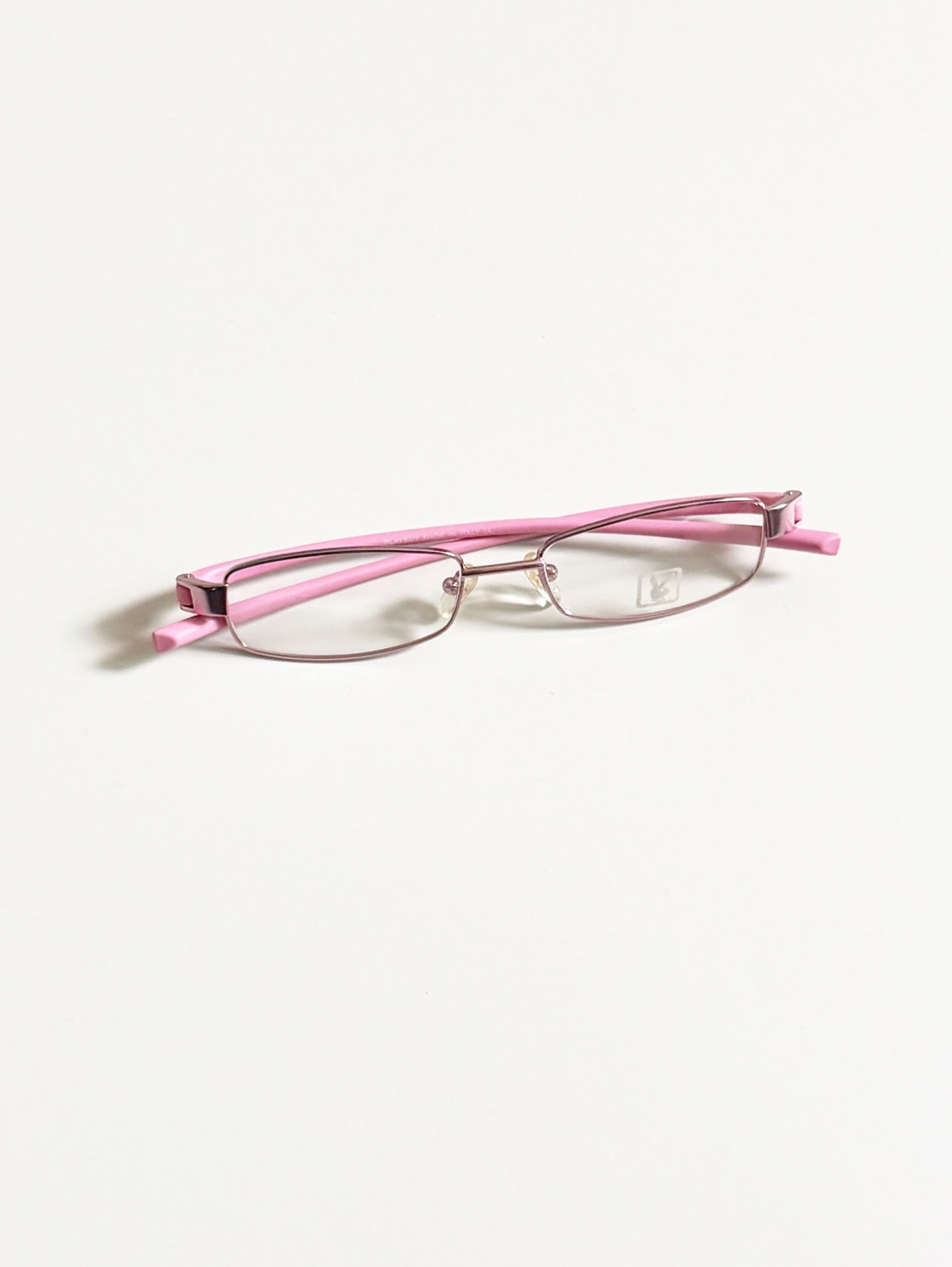 90's PLAYBOY Silver Light Pink Square Metal Frame Glasses