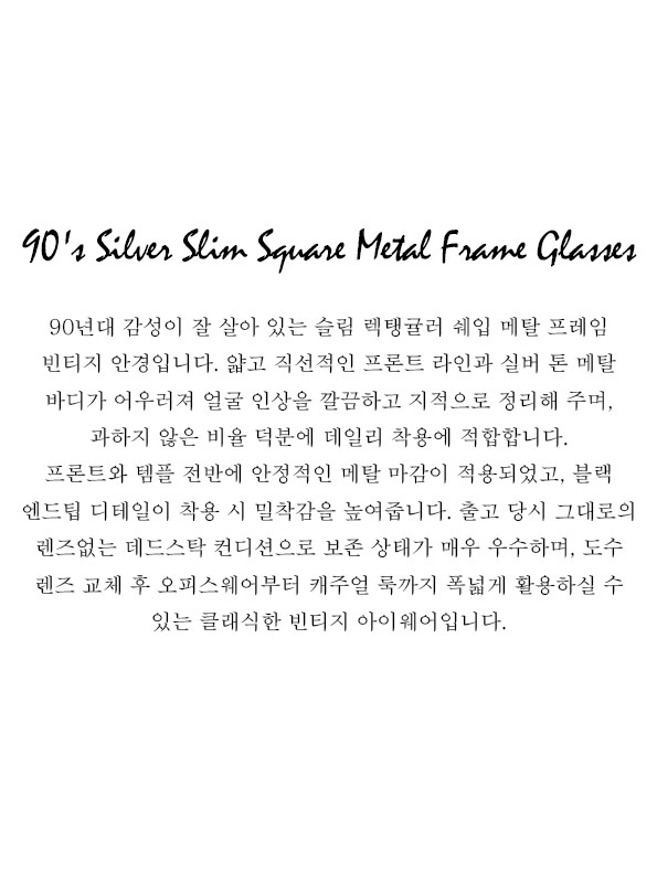 90's Silver Slim Square Metal Frame Glasses