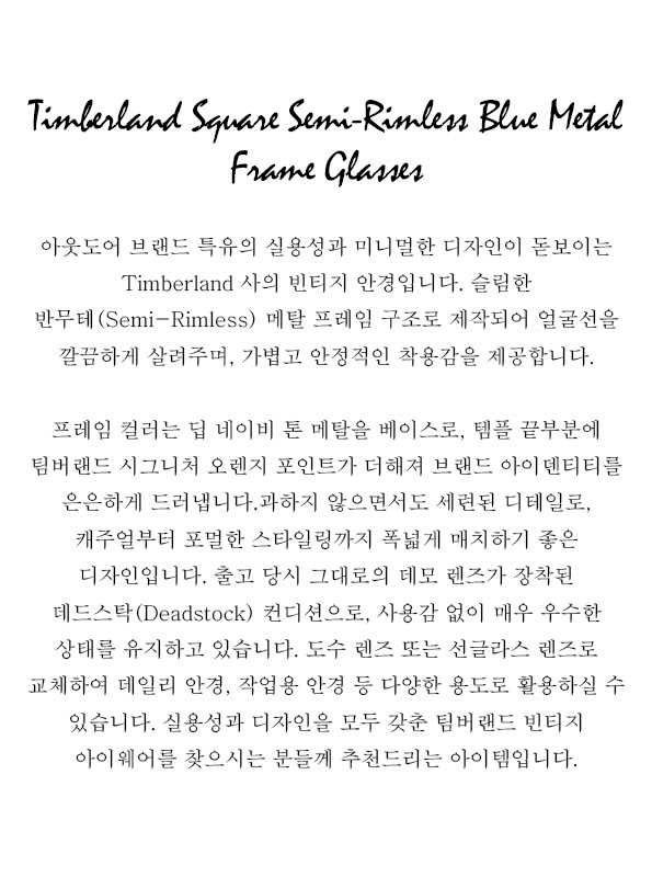 Timberland Square Semi-Rimless Blue Metal Frame Glasses