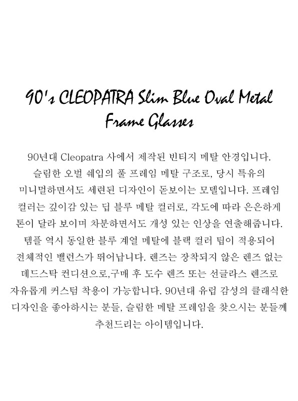 90's CLEOPATRA Slim Blue Oval Metal Frame Glasses