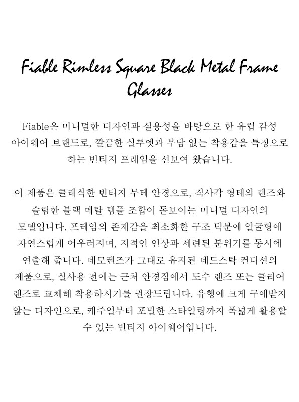 Fiable Rimless Square Black Metal Frame Glasses