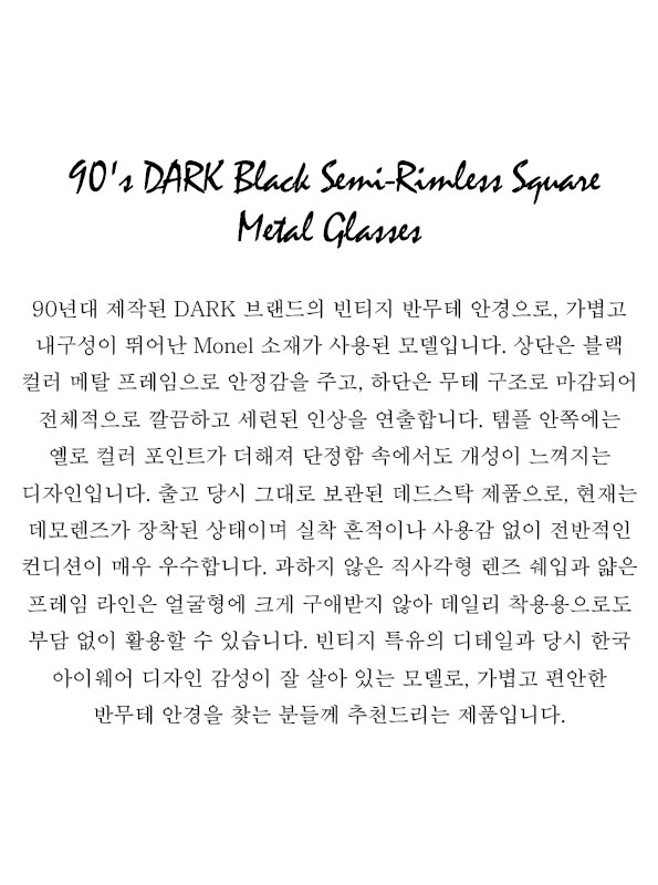 90's DARK Black Semi-Rimless Square Metal Glasses