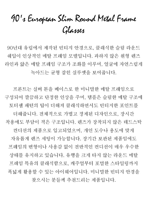 90's European Slim Round Metal Frame Glasses