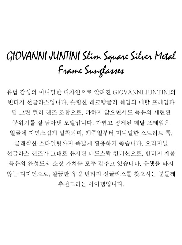 GIOVANNI JUNTINI Slim Square Silver Metal Frame Sunglasses