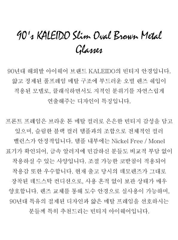90's KALEIDO Slim Oval Brown Metal Glasses
