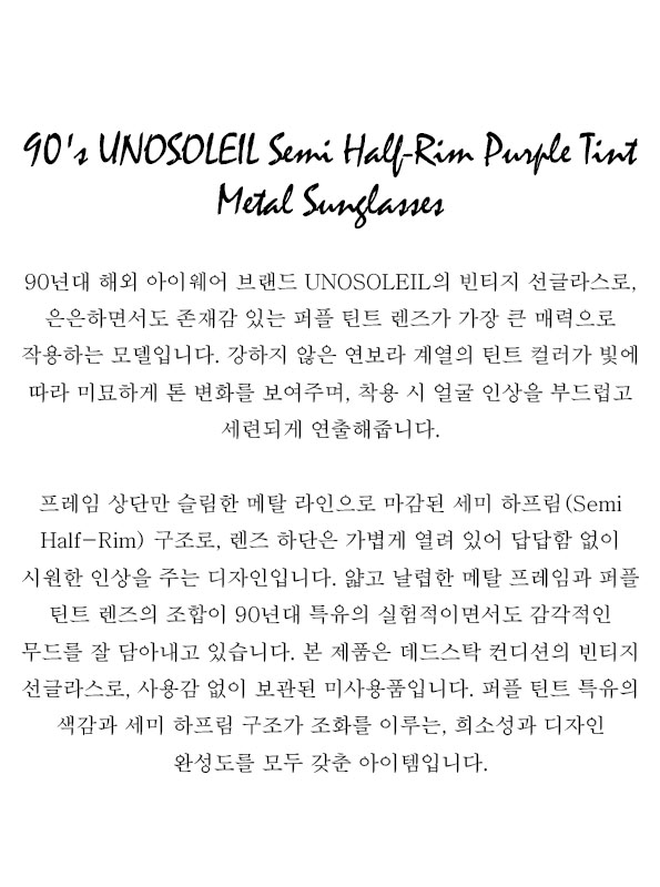 90's UNOSOLEIL Semi Half-Rim Purple Tint Metal Sunglasses