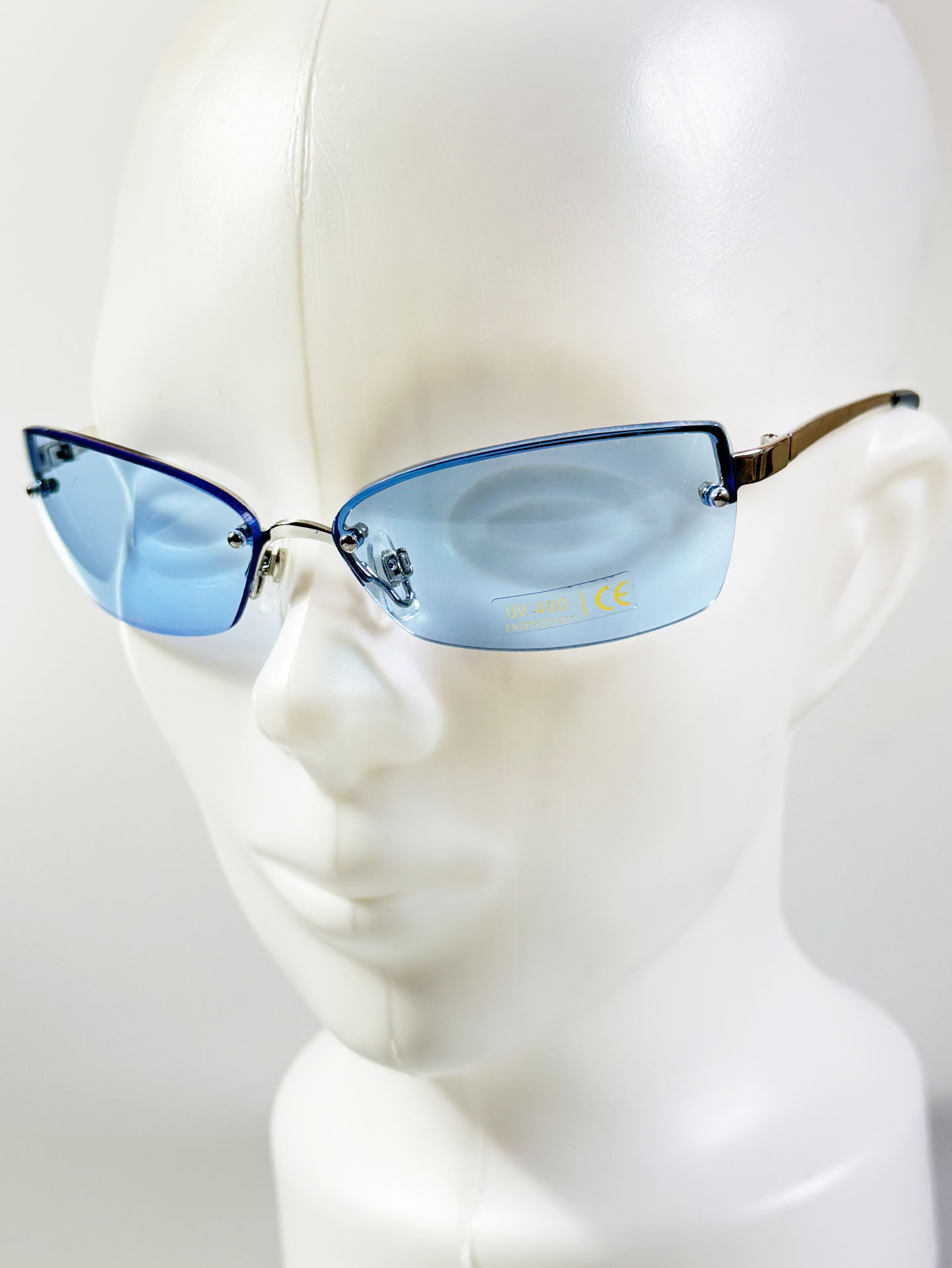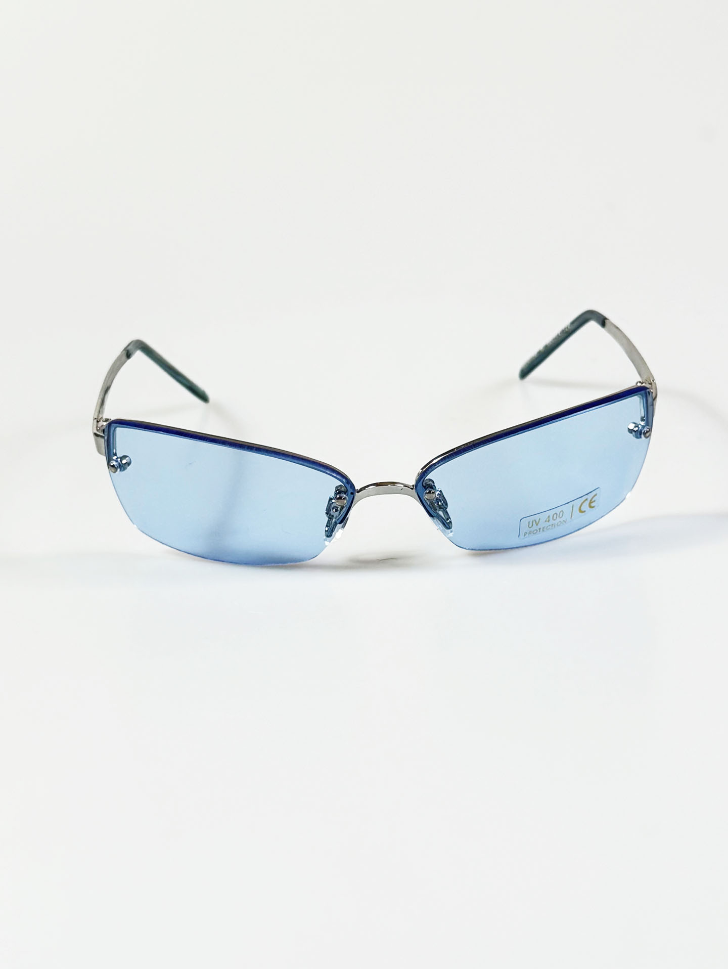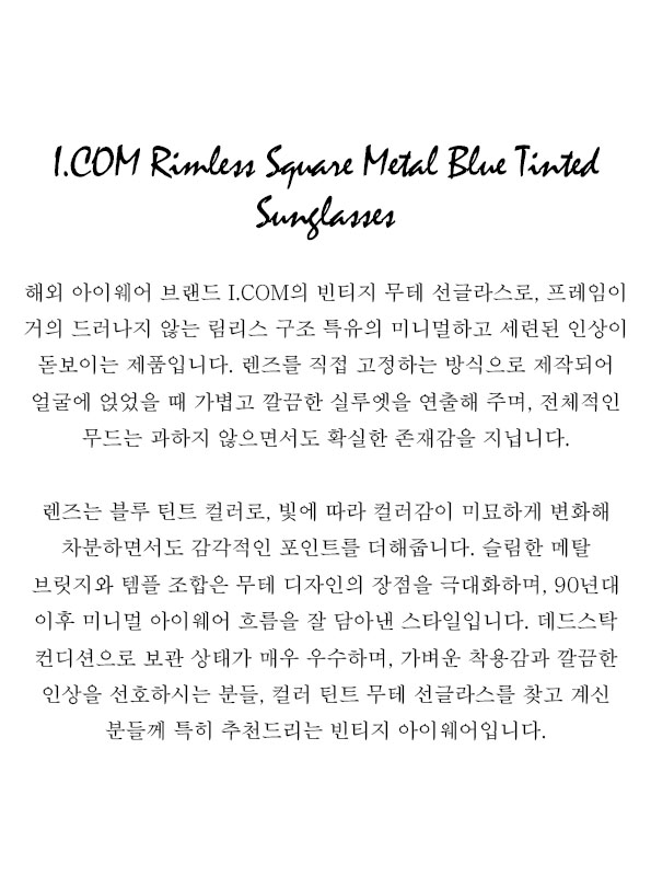 I.COM Rimless Square Metal Blue Tinted Sunglasses