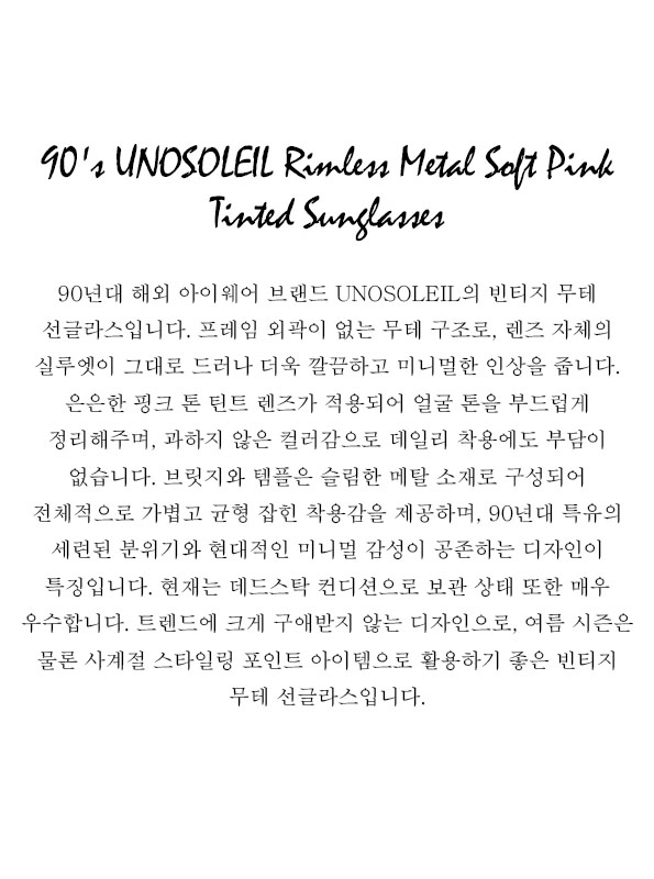 90's UNOSOLEIL Rimless Metal Soft Pink Tinted Sunglasses