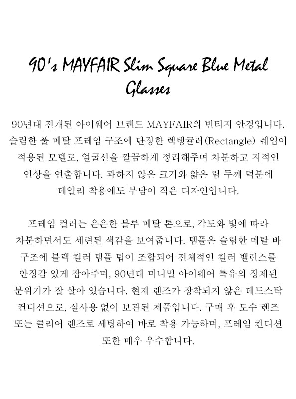 90's MAYFAIR Slim Square Blue Metal Glasses