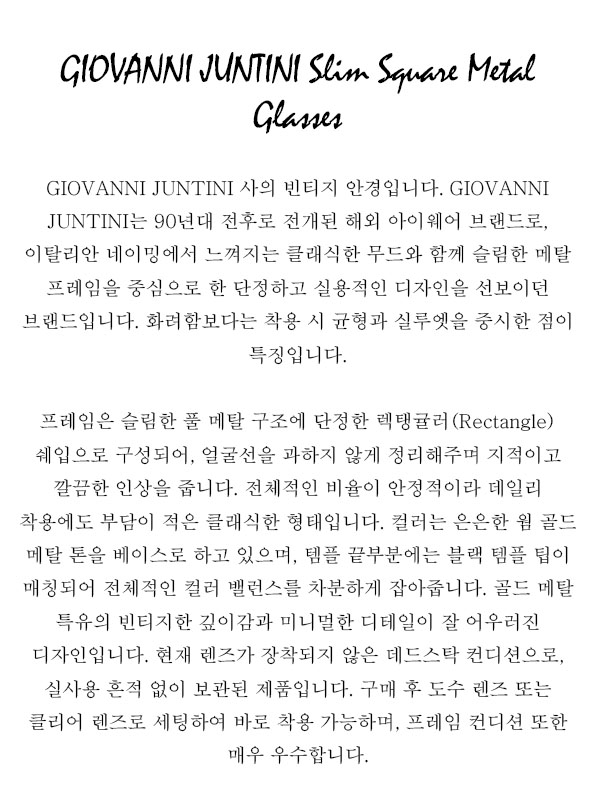 GIOVANNI JUNTINI Slim Square Metal Glasses