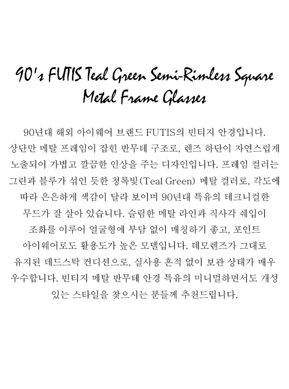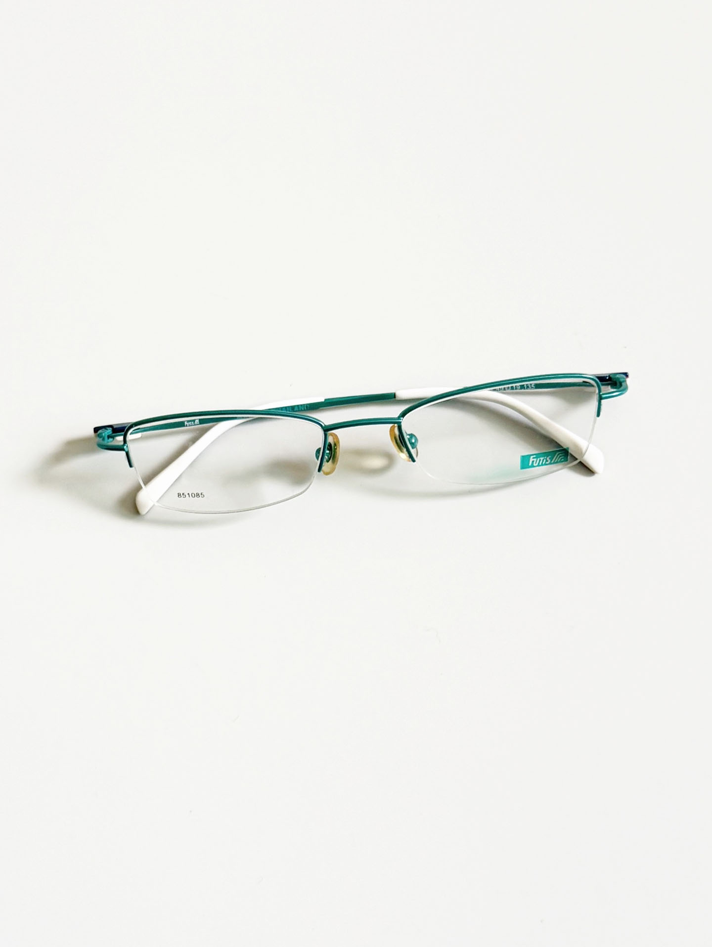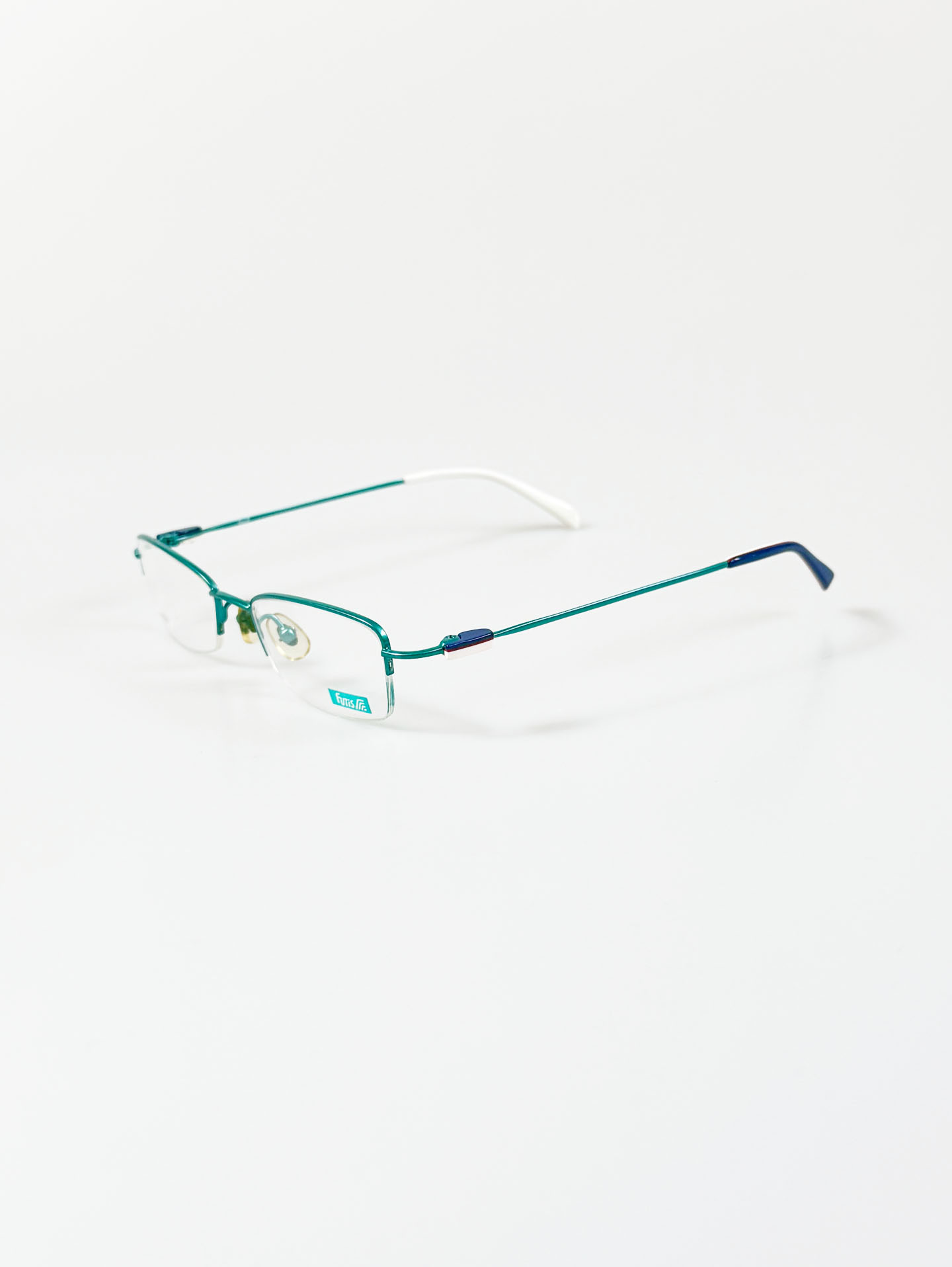 90's FUTIS Teal Green Semi-Rimless Square Metal Frame Glasses