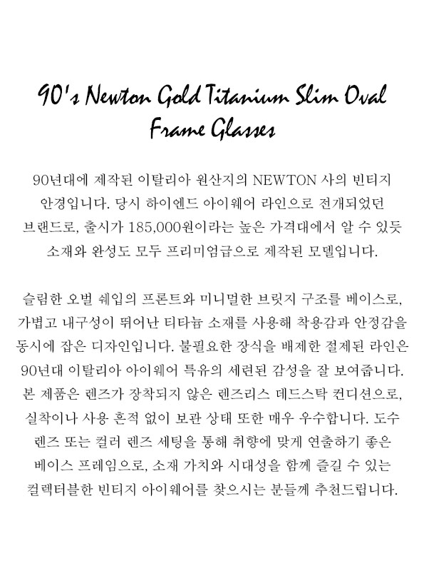 90's Newton Gold Titanium Slim Oval Frame Glasses