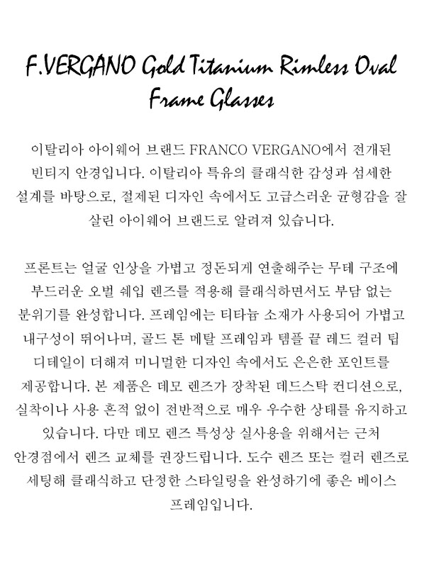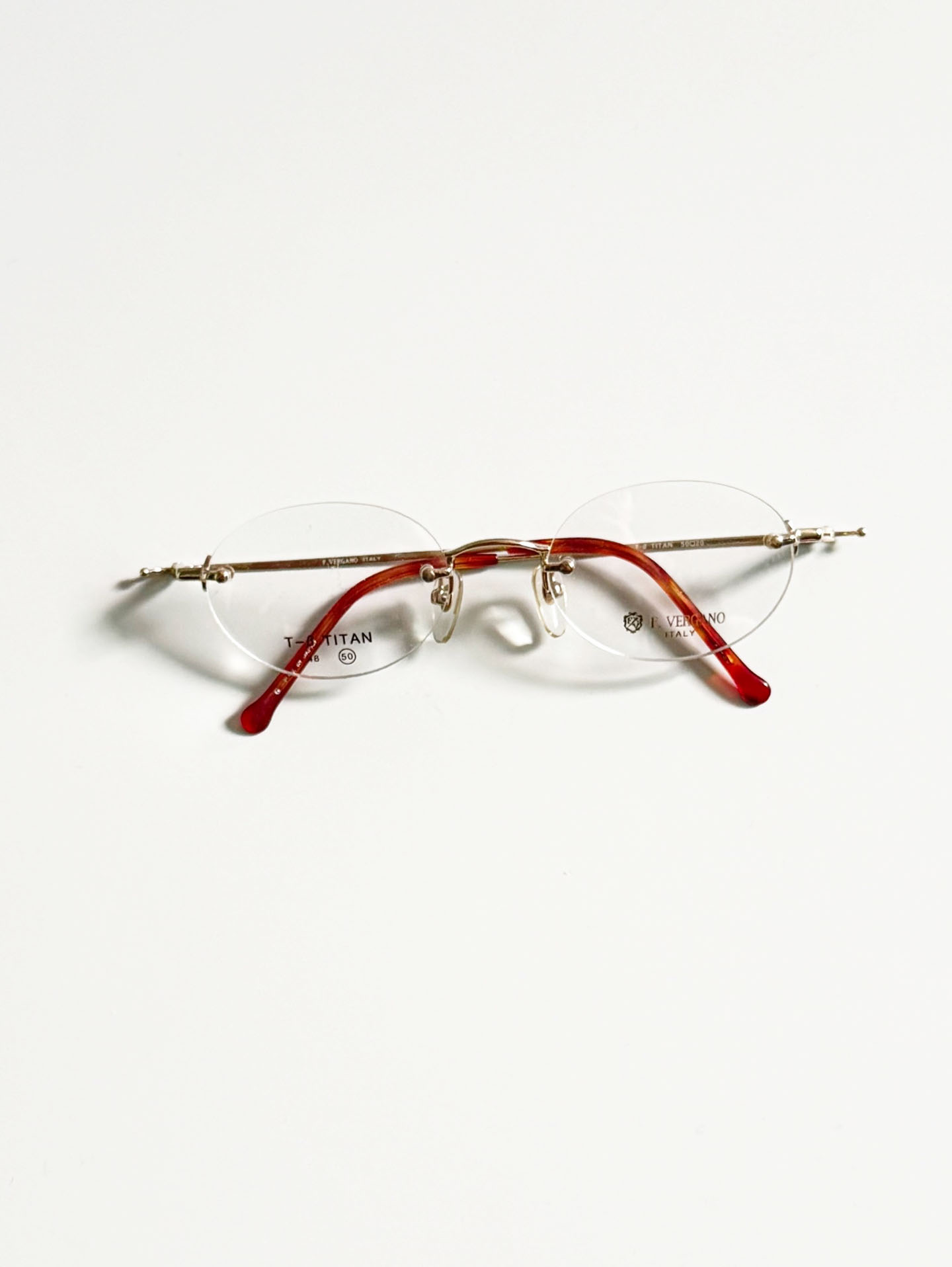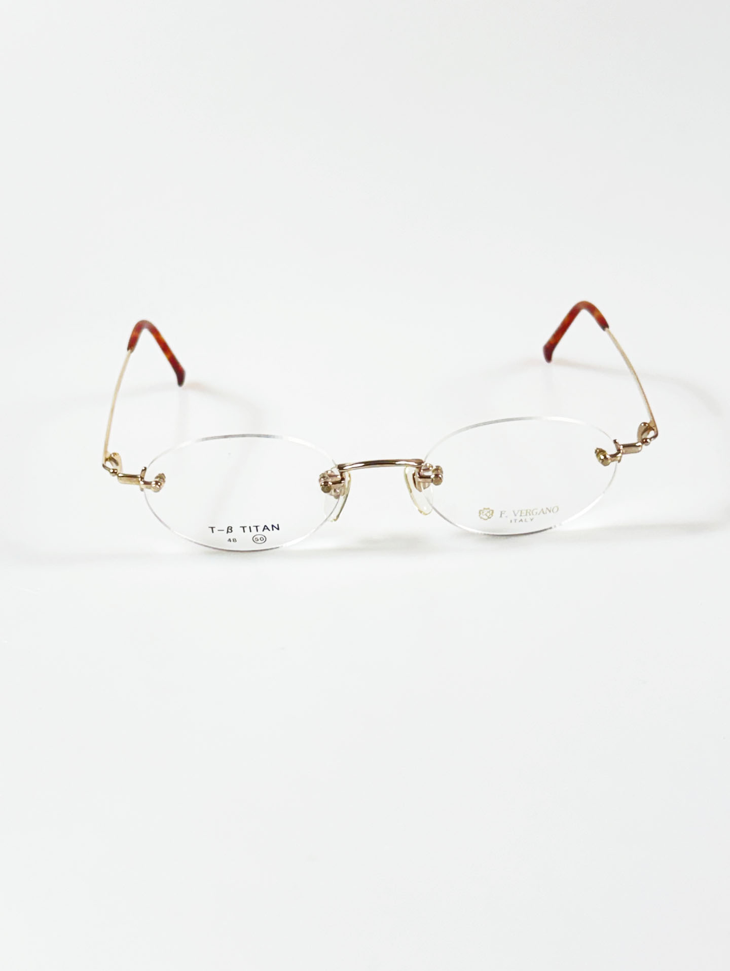 F.VERGANO Gold Titanium Rimless Oval Frame Glasses