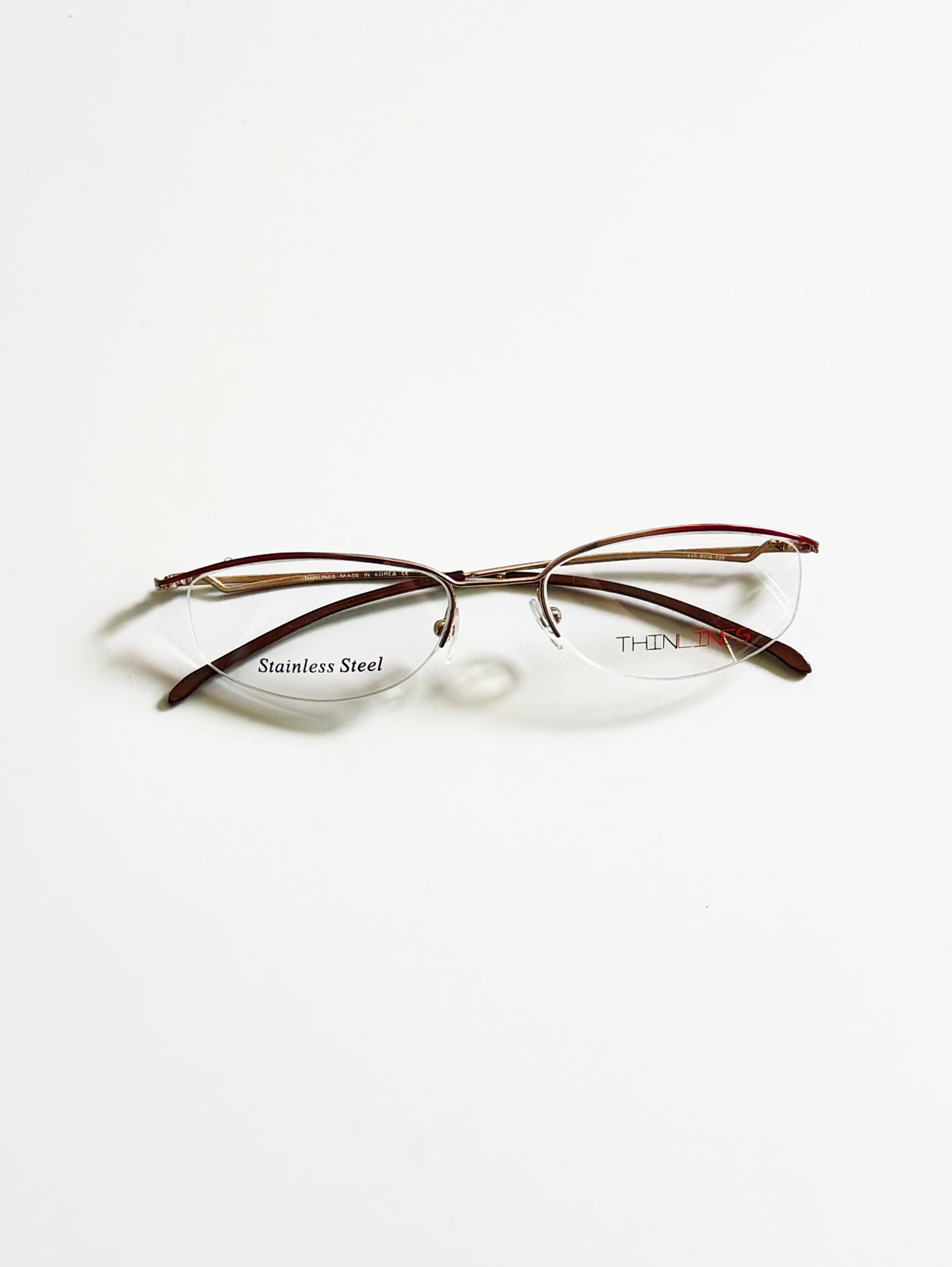 90's Thin LINES Rose Gold Stainless Steel Semi-Rimless Frame Glasses