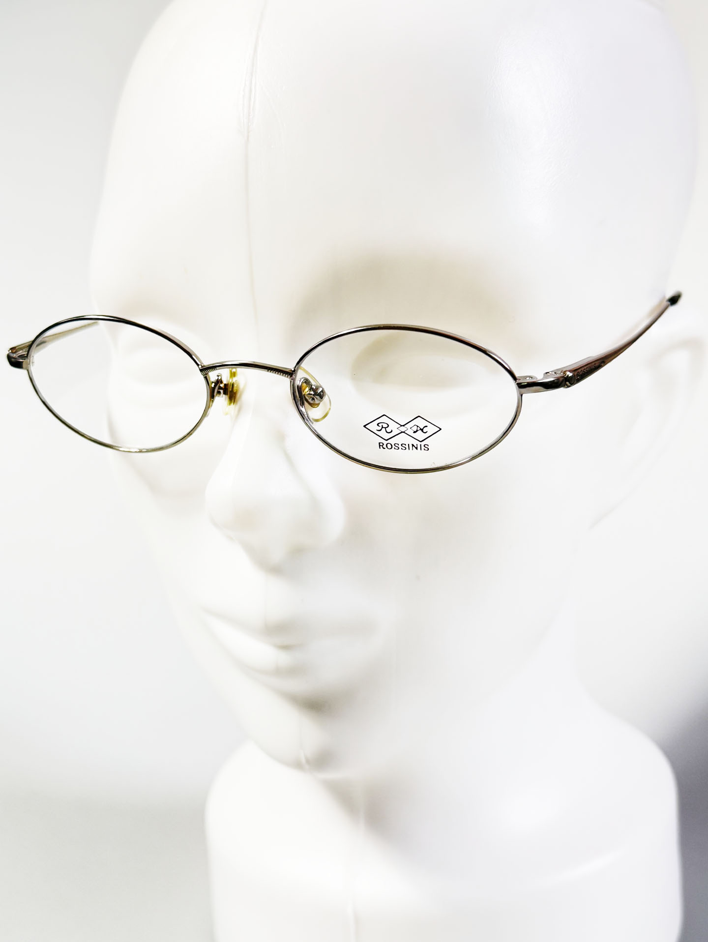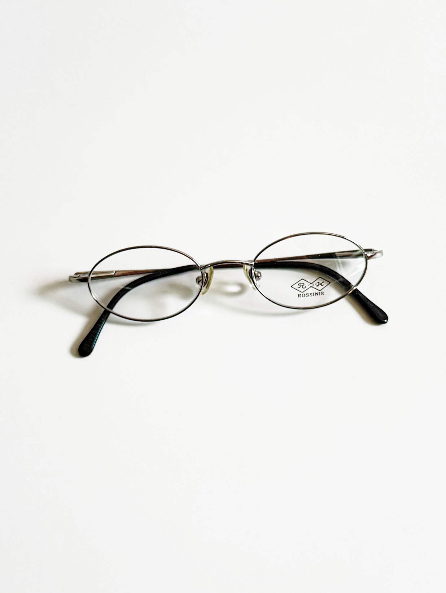 90's ROSSINIS Silver Slim Oval Metal Frame Glasses