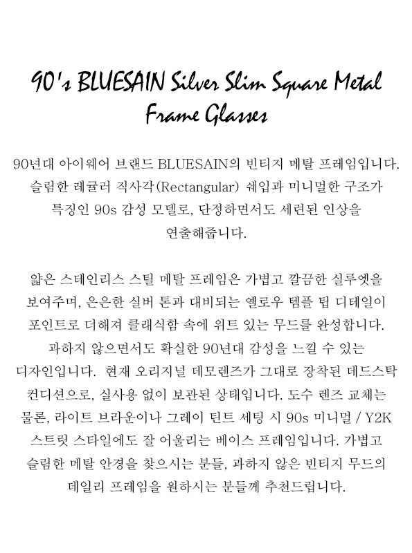 90's BLUESAIN Silver Slim Square Metal Frame Glasses