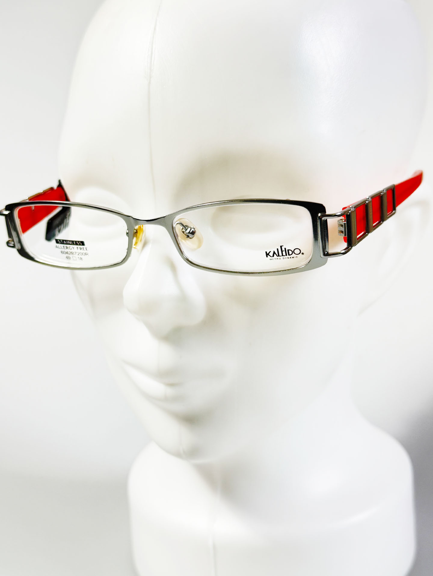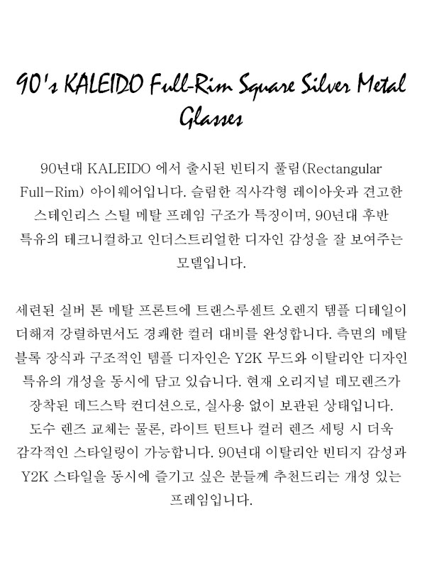 90's KALEIDO Full-Rim Square Silver Metal Glasses