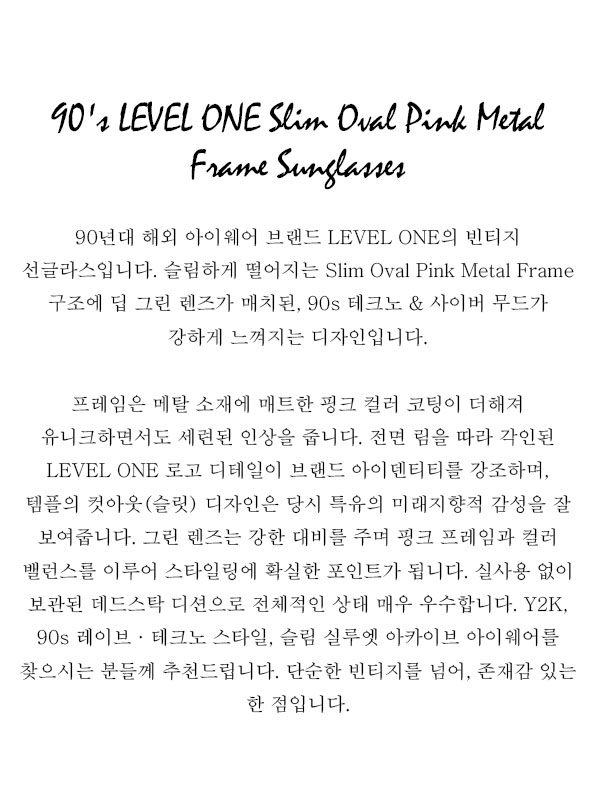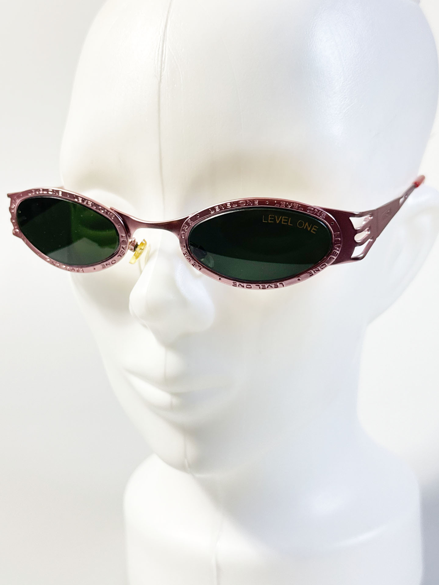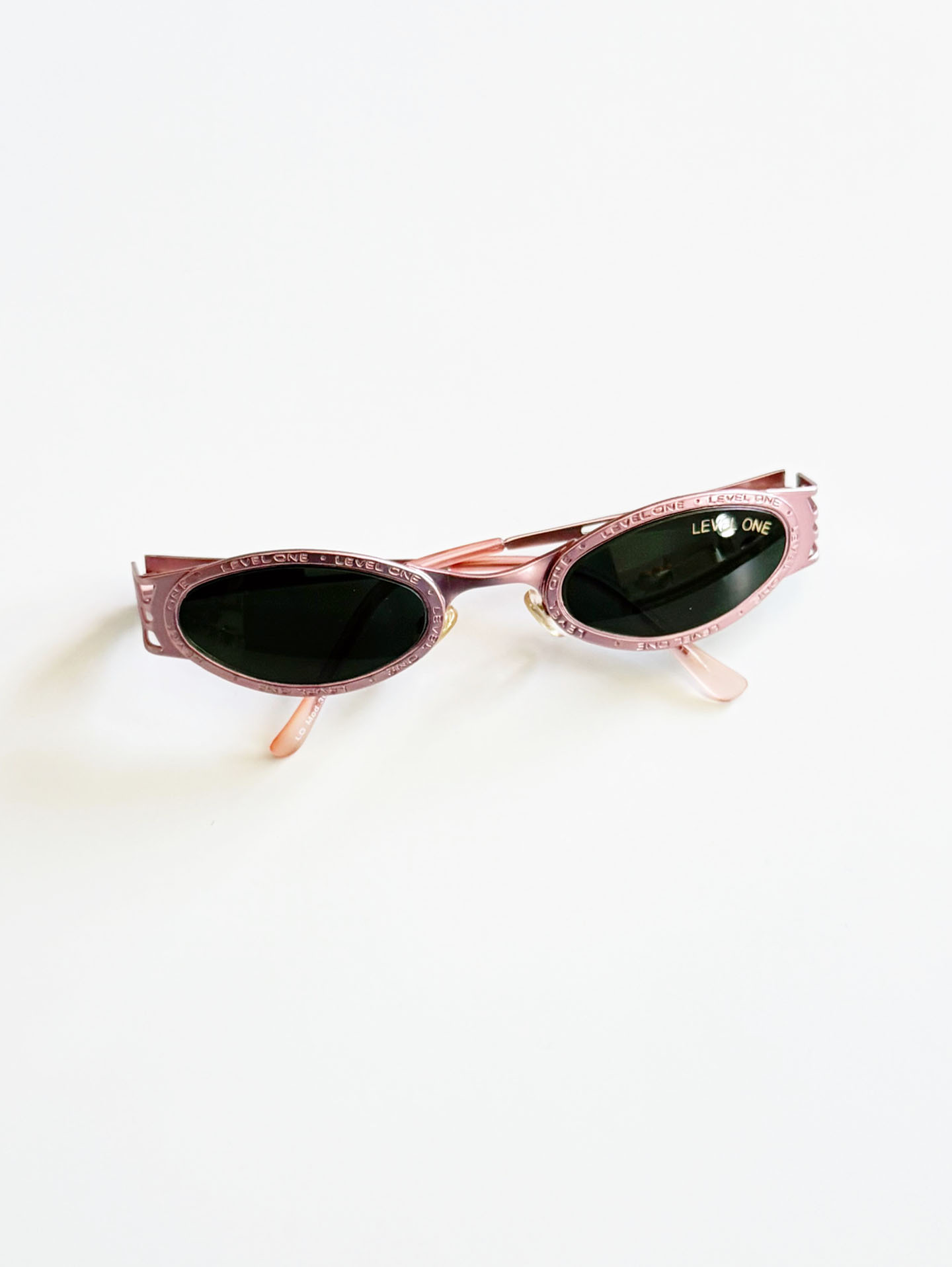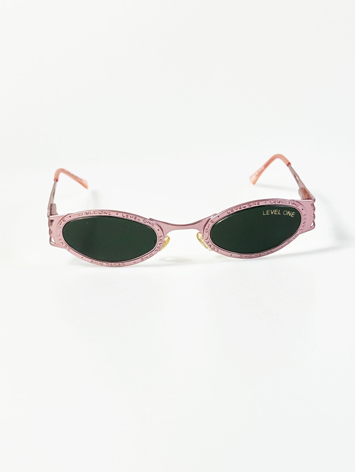 90's LEVEL ONE Slim Oval Pink Metal Frame Sunglasses