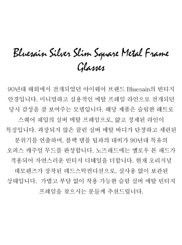 90's BLUESAIN Silver Slim Square Metal Frame Glasses