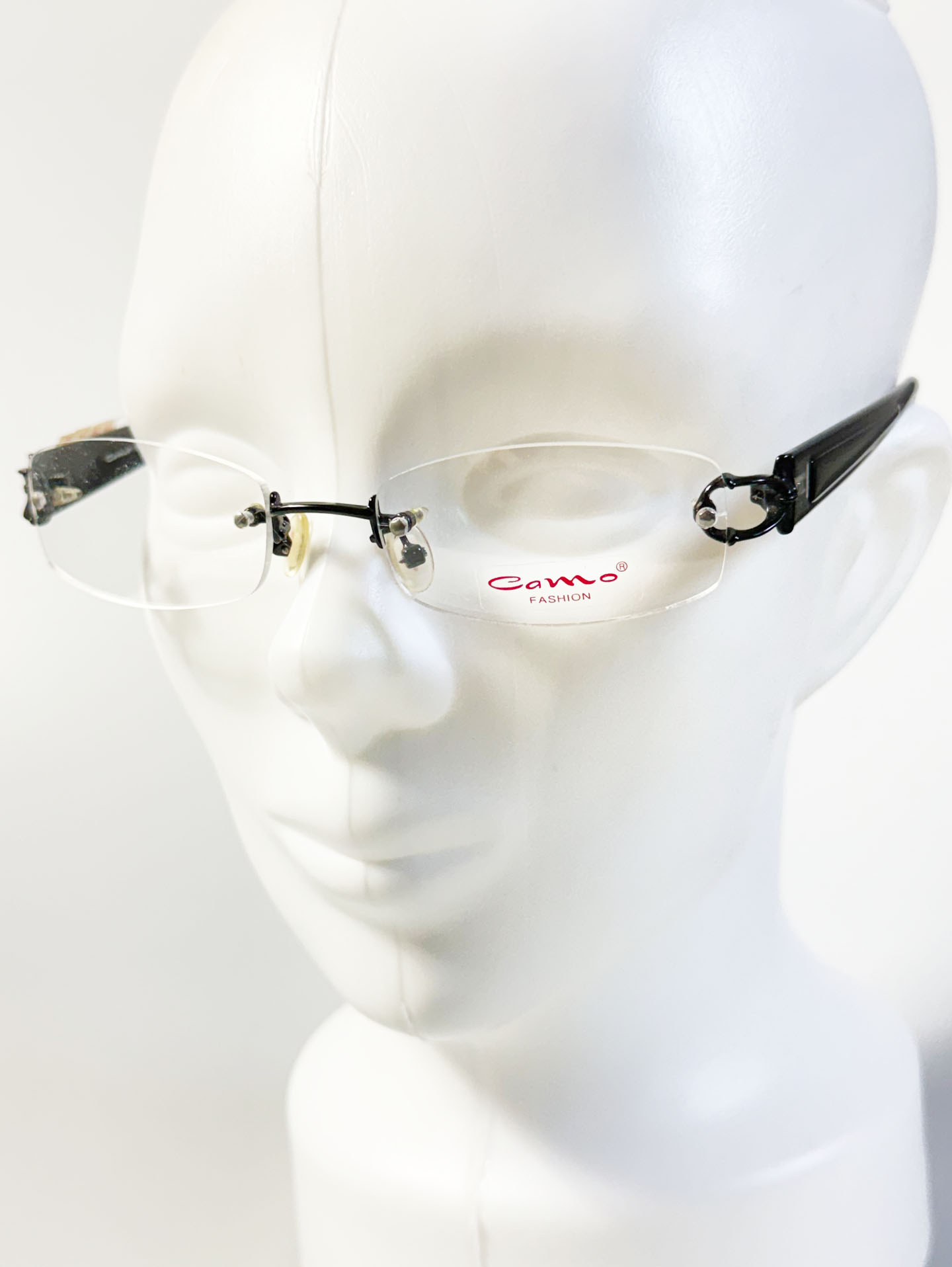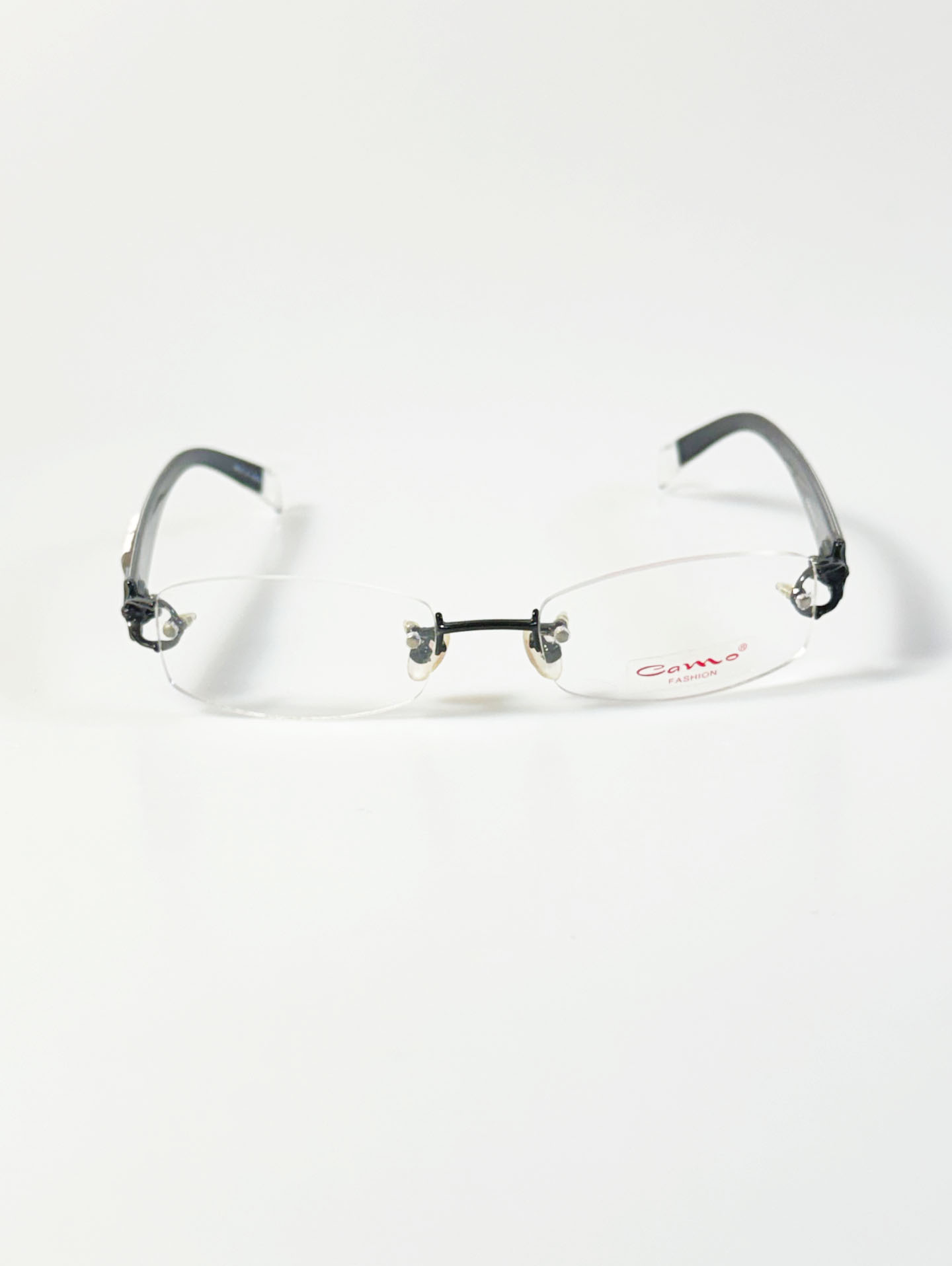 Camo Fashion Rimless Square Black Metal Frame Glasses