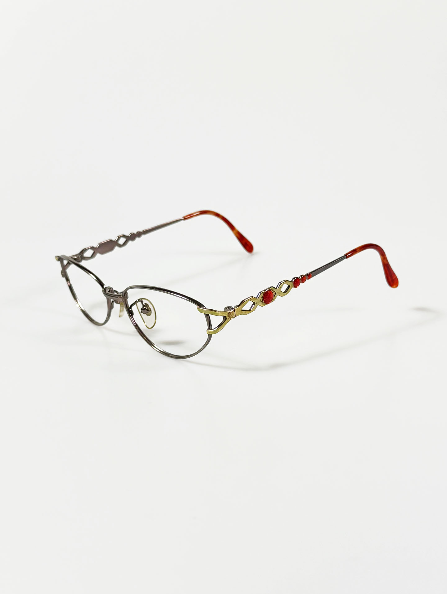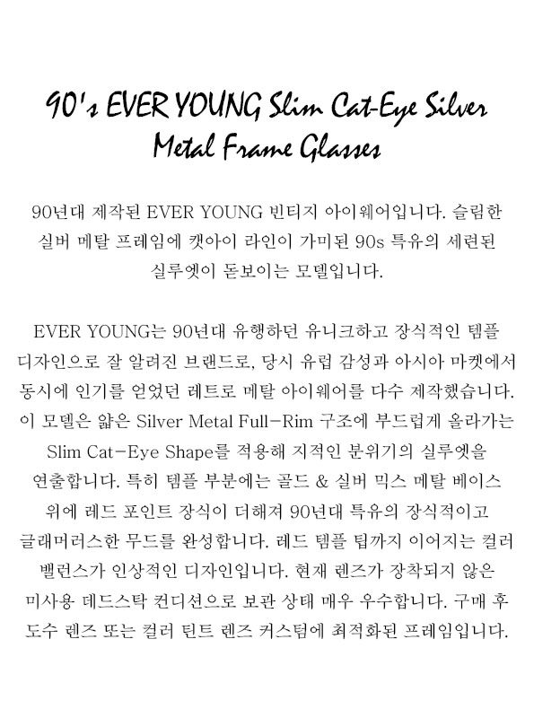 90's EVER YOUNG Slim Cat-Eye Silver Metal Frame Glasses
