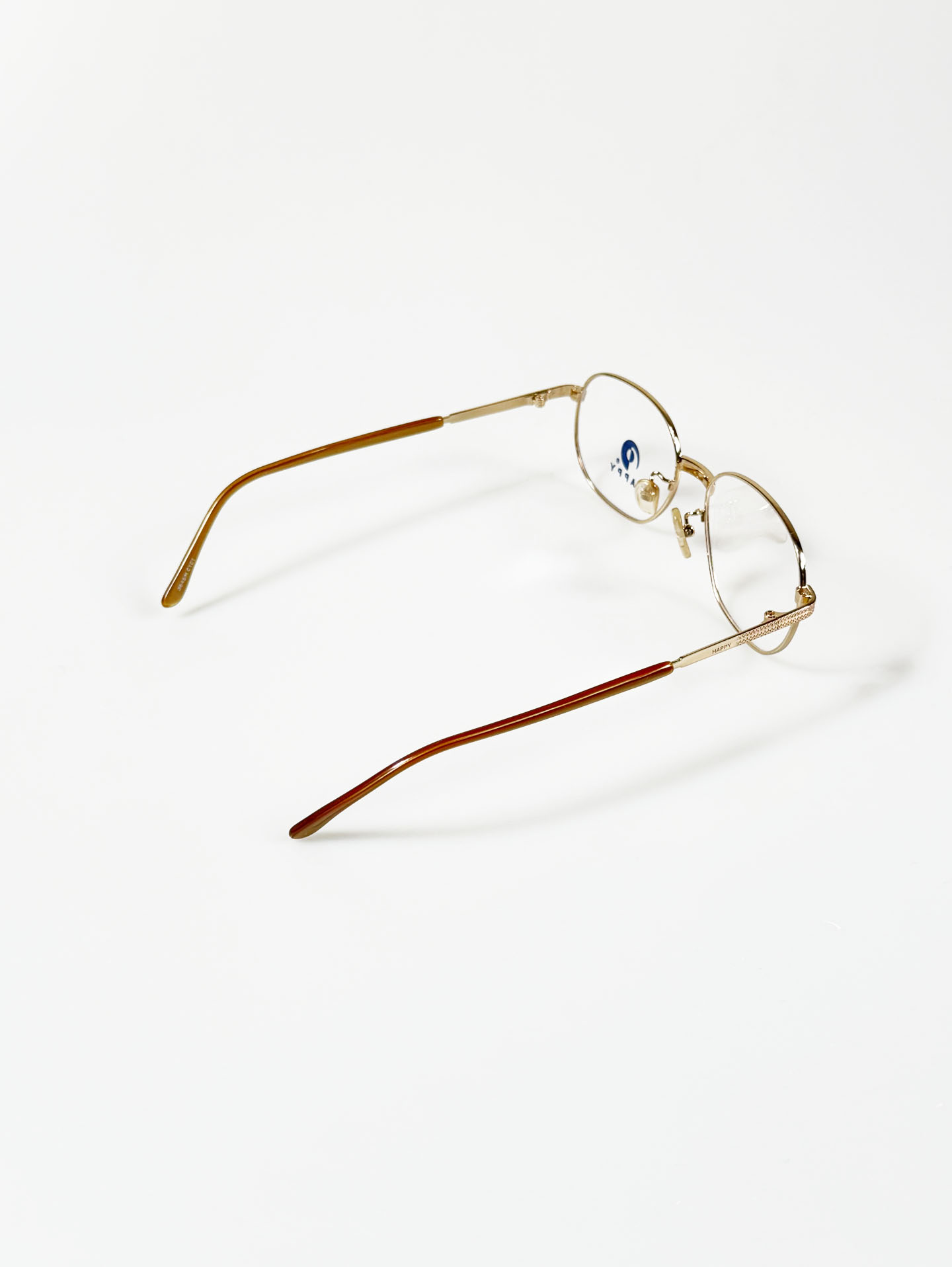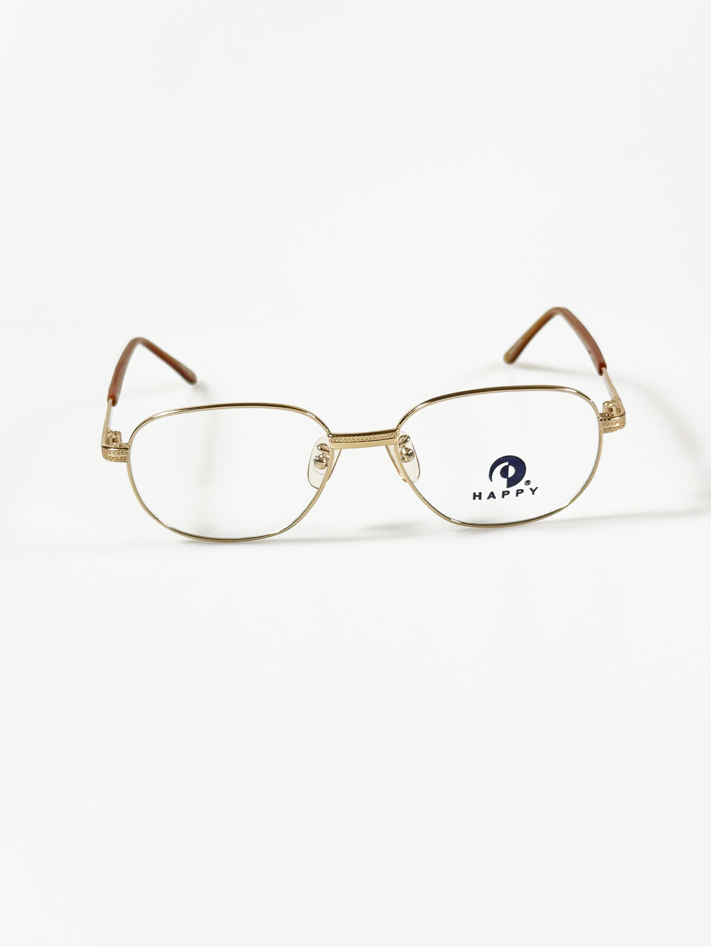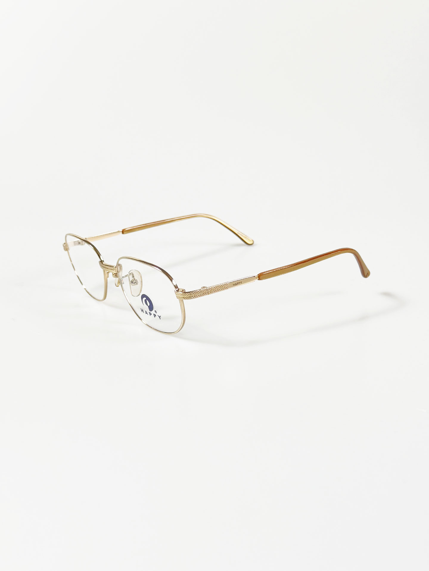 90's HAPPY Gold Slim Square Metal Frame Glasses