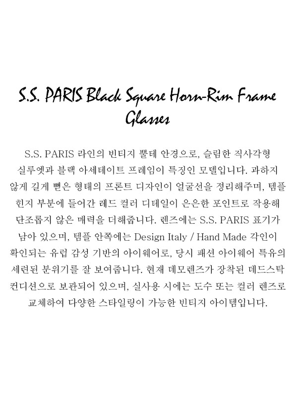 S.S. PARIS Black Square Horn-Rim Frame Glasses
