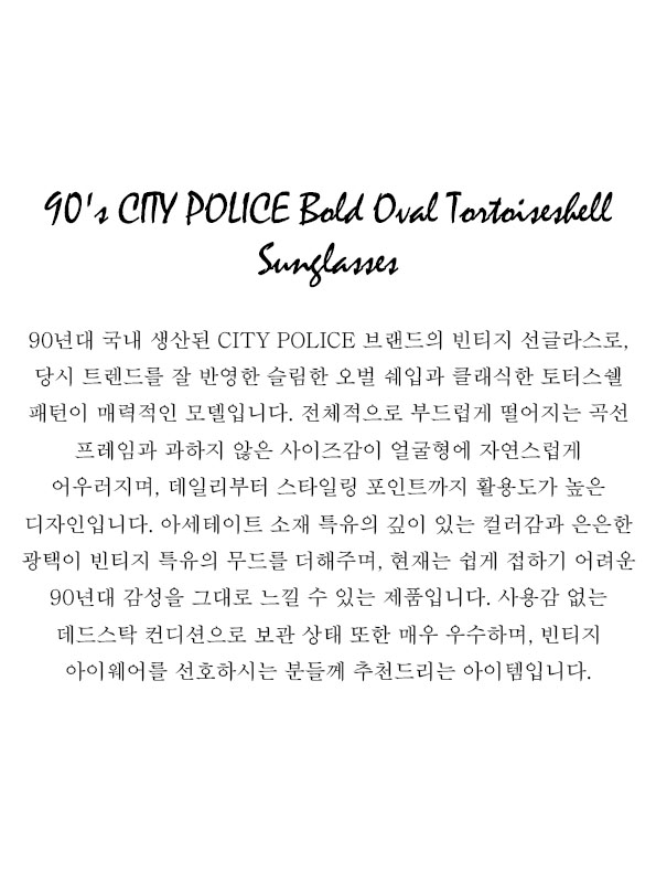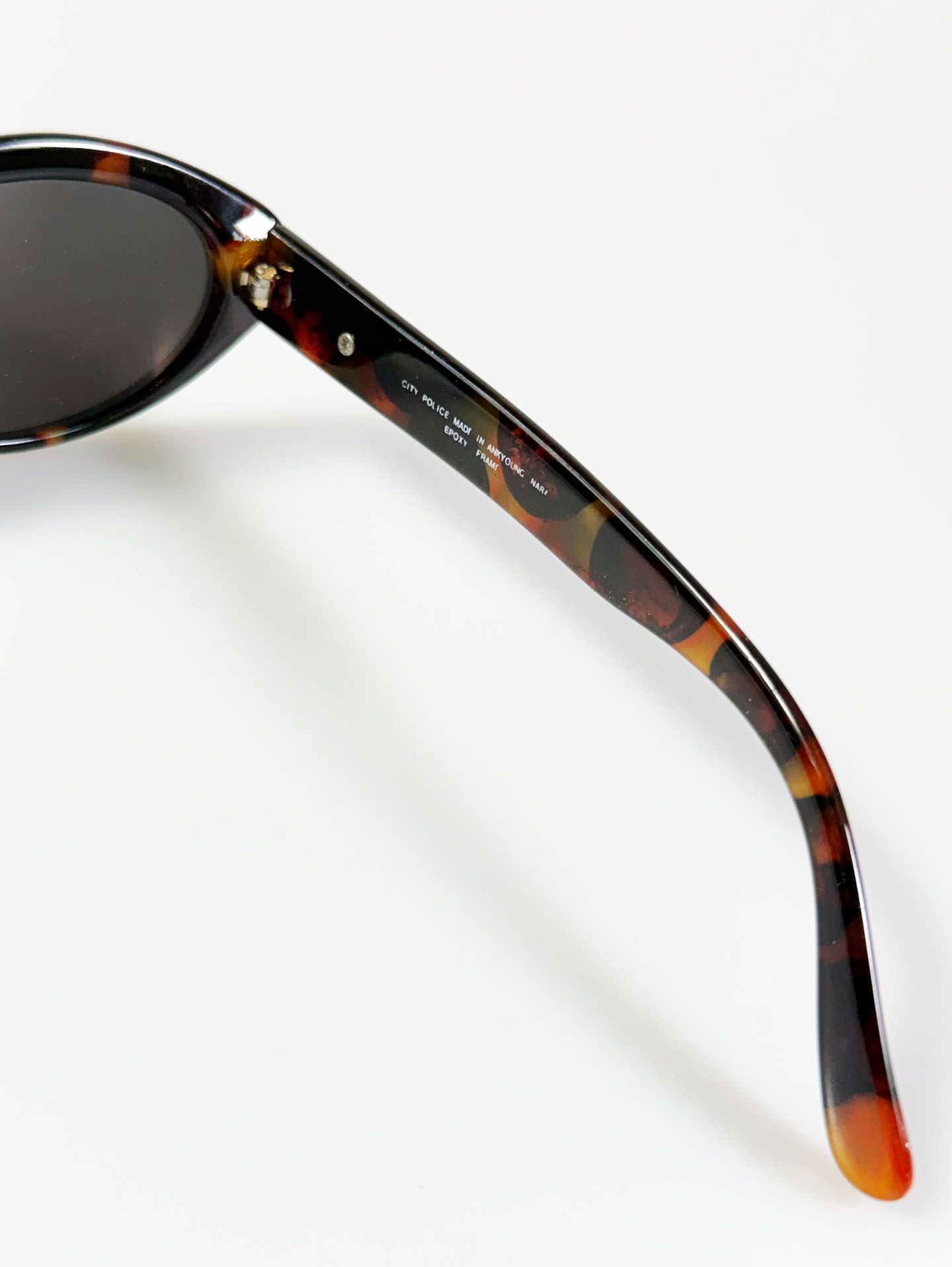 90's CITY POLICE Bold Oval Tortoiseshell Sunglasses