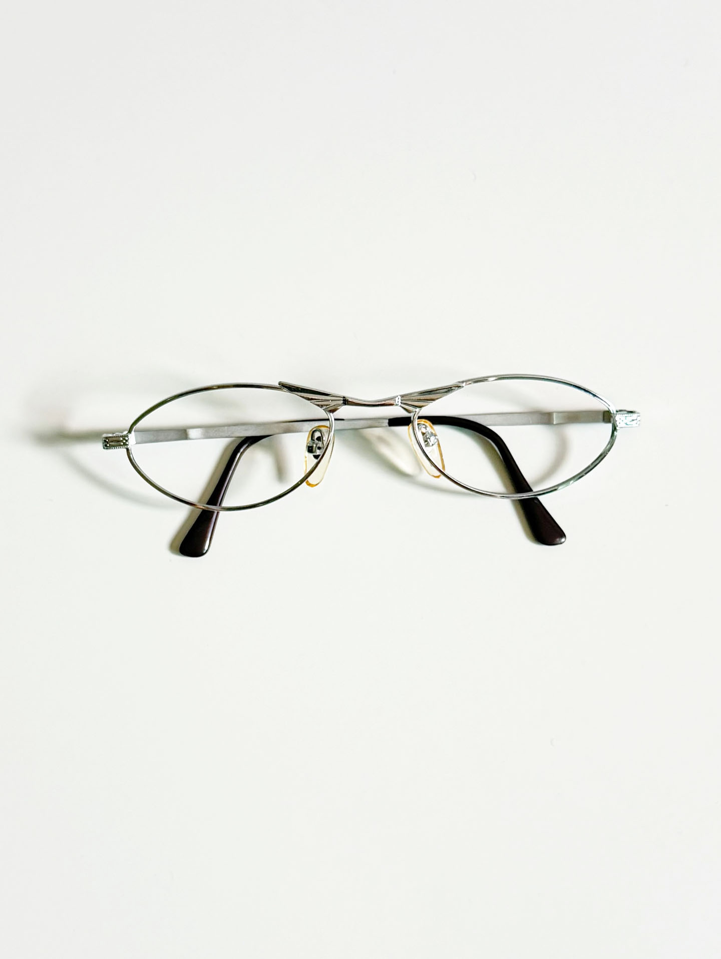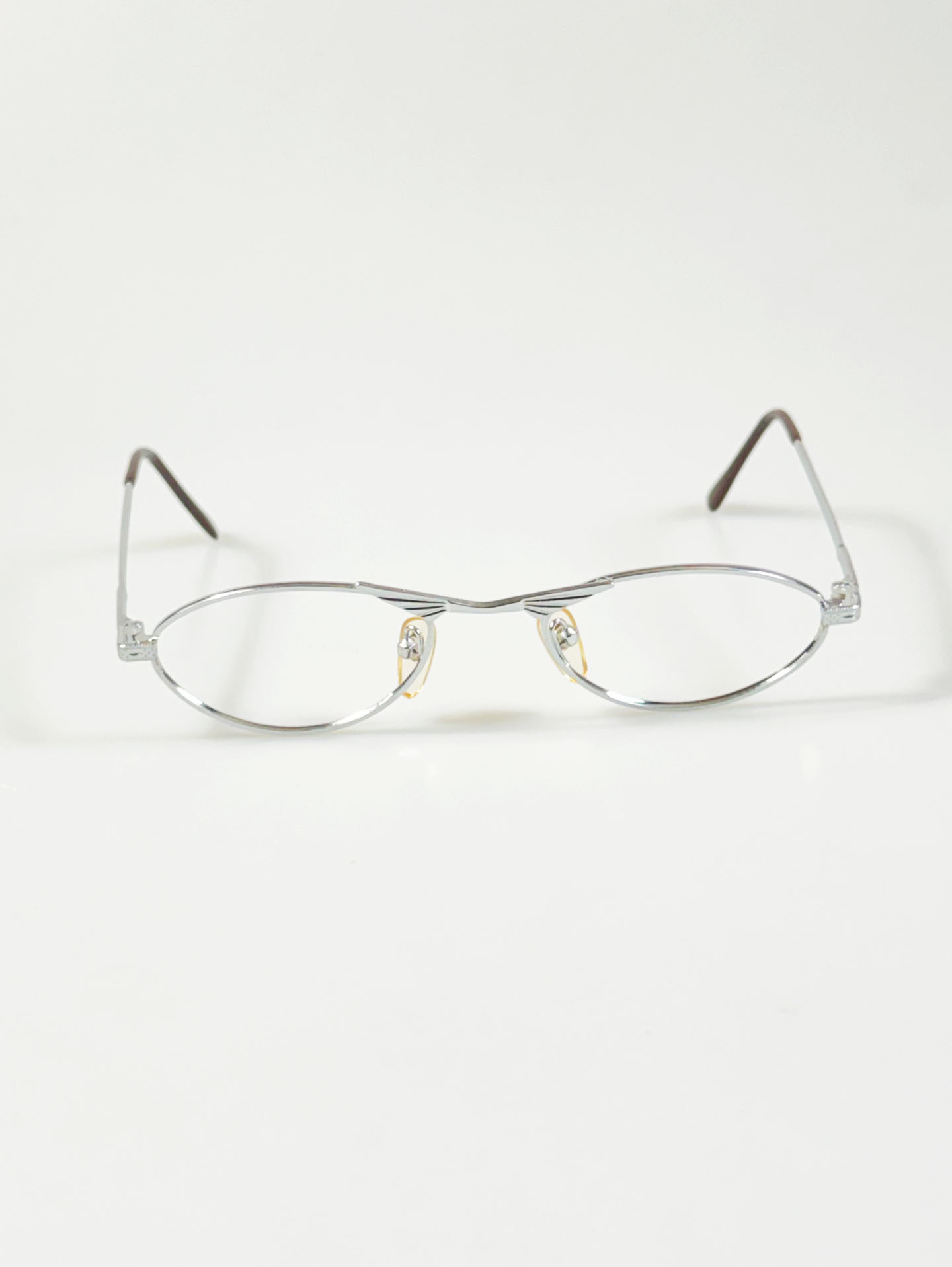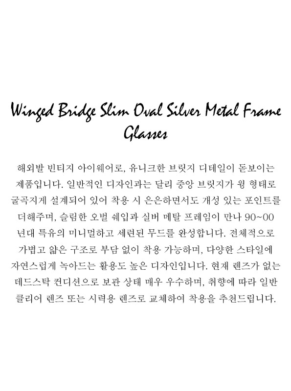 Winged Bridge Slim Oval Silver Metal Frame Glasses