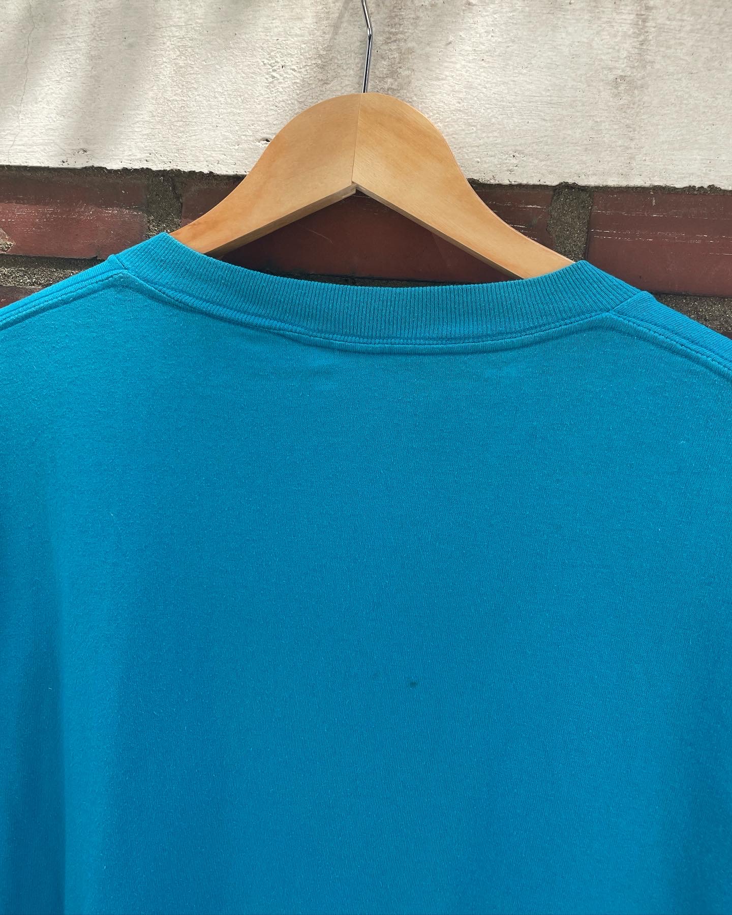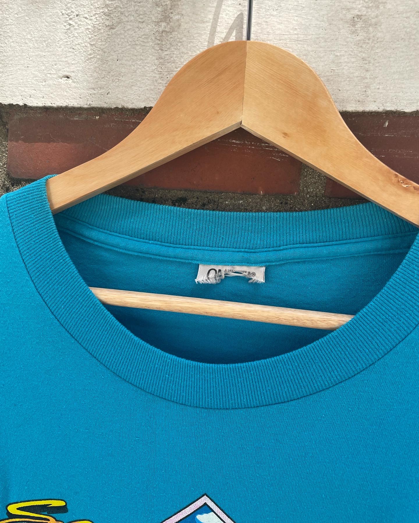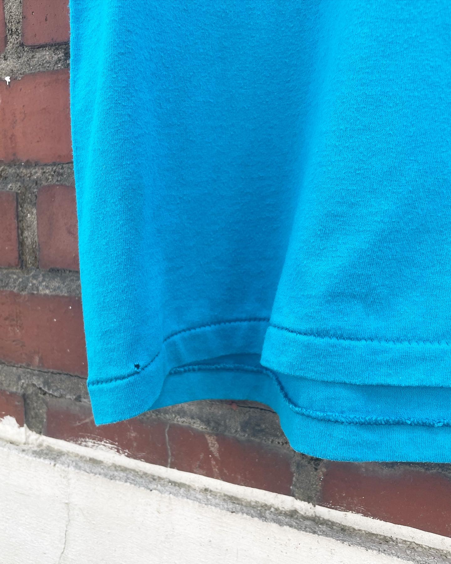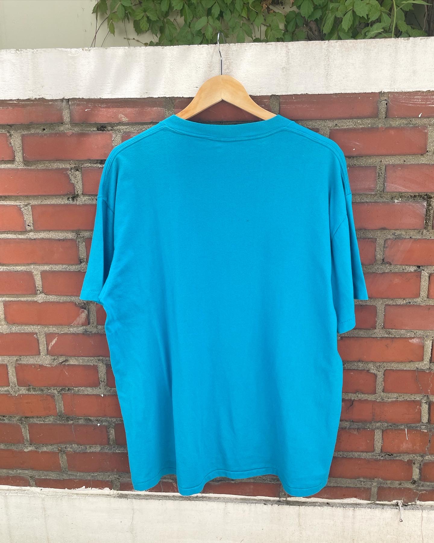 90년대 생산된 made in USA Oneita 사의 싱글스티치 올드카 티셔츠입니다. 시원한 블루 컬러와 빈티지한 올드카니 나염이 아주 매력적인 제품이며 밑단 작은 핀홀과 등판 잘안보이는 오염 존재하며 실측 105-108 정도 되는 사이즈감입니다.