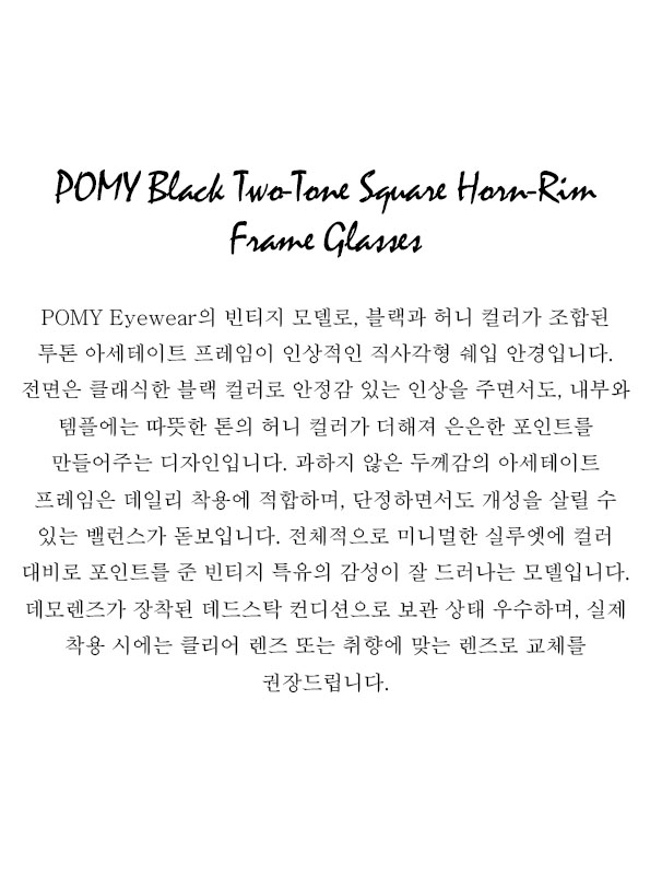 POMY Black Two-Tone Square Horn-Rim Frame Glasses
