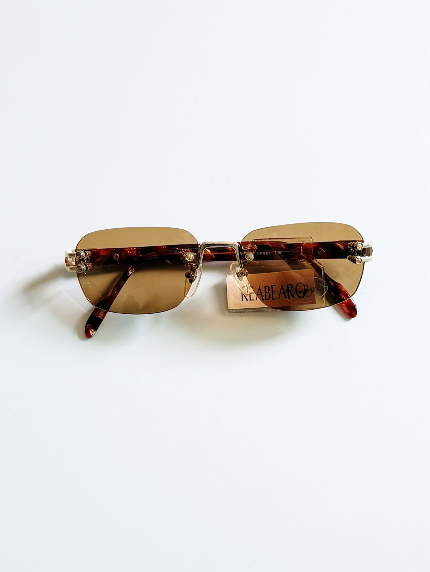 REABEARO Rimless Square Metal Frame Tinted Sunglasses