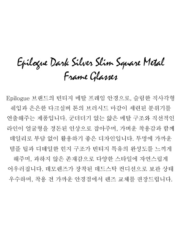 Epilogue Dark Silver Slim Square Metal Frame Glasses
