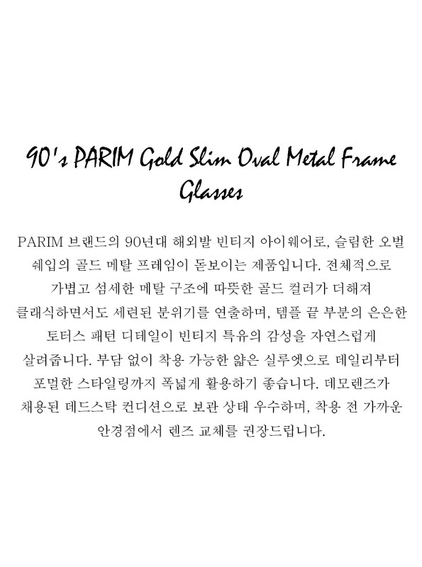 90's PARIM Gold Slim Oval Metal Frame Glasses