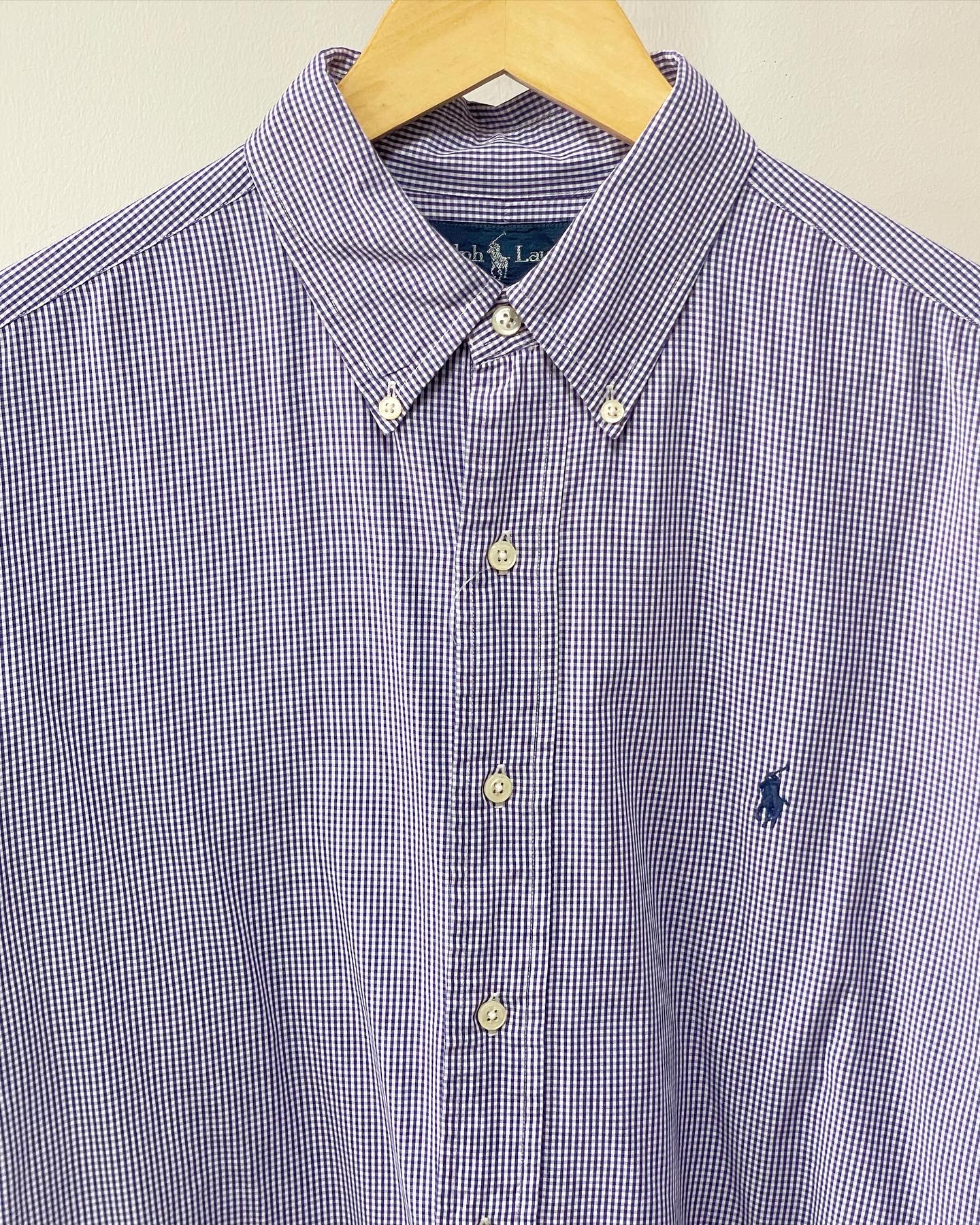 폴로 랄프로렌 클래식핏 잔체크셔츠입니다. 하자 및 데미지 없는 훌륭한 컨디션이며 실측 105 정도 되는 사이즈감입니다.
