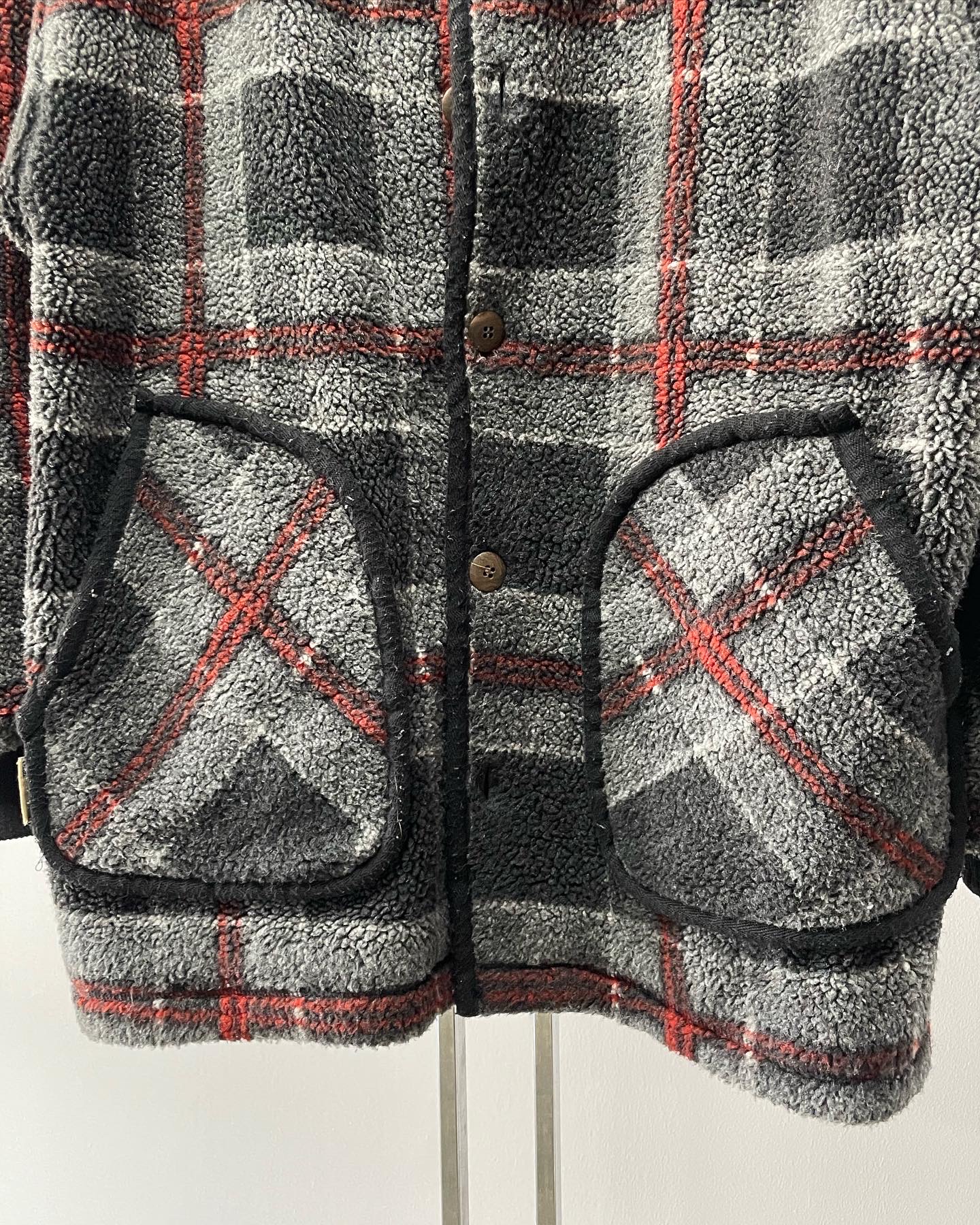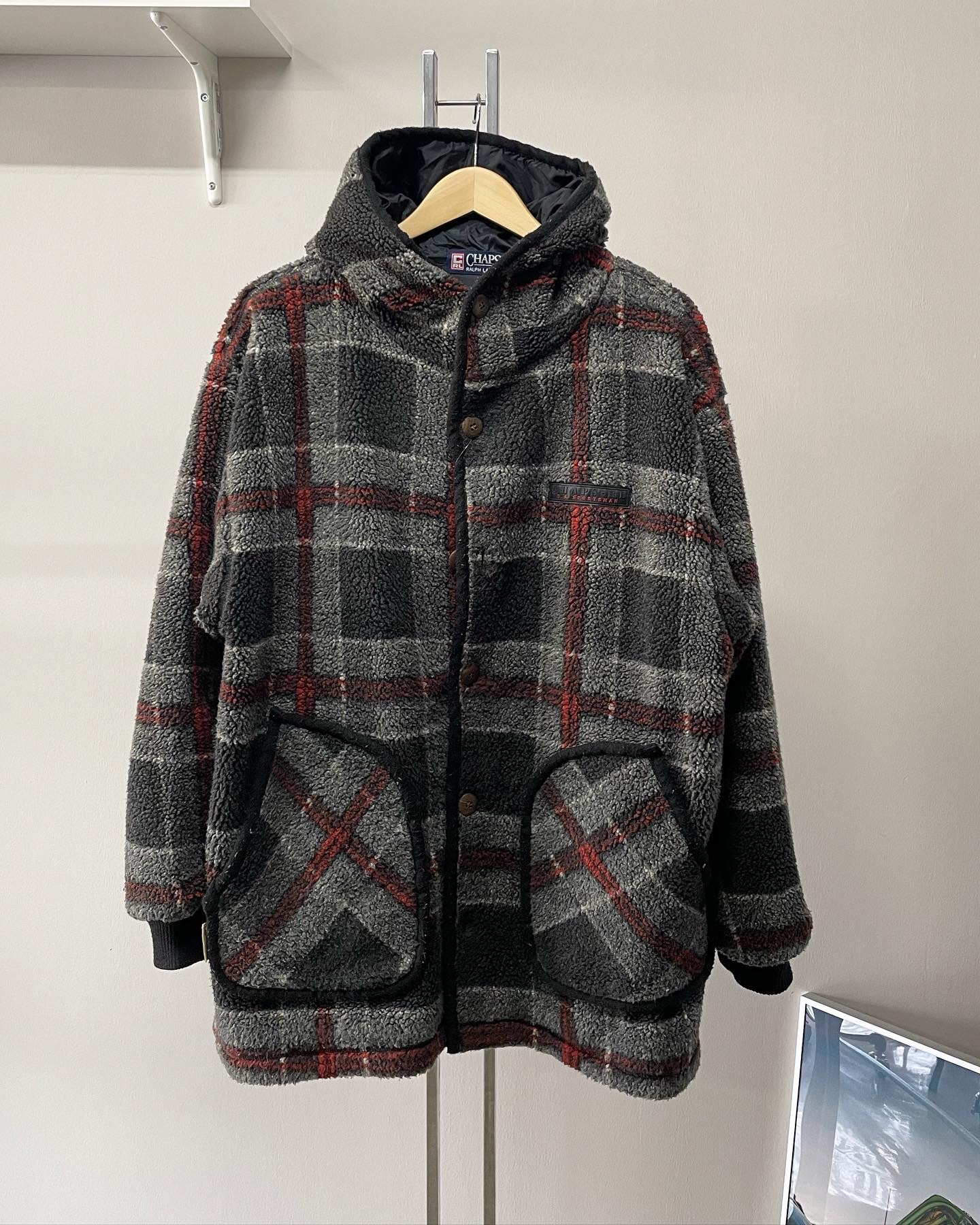 90s Chaps Ralph Lauren Check Fleece Hooded Jacket (105-107 Size)