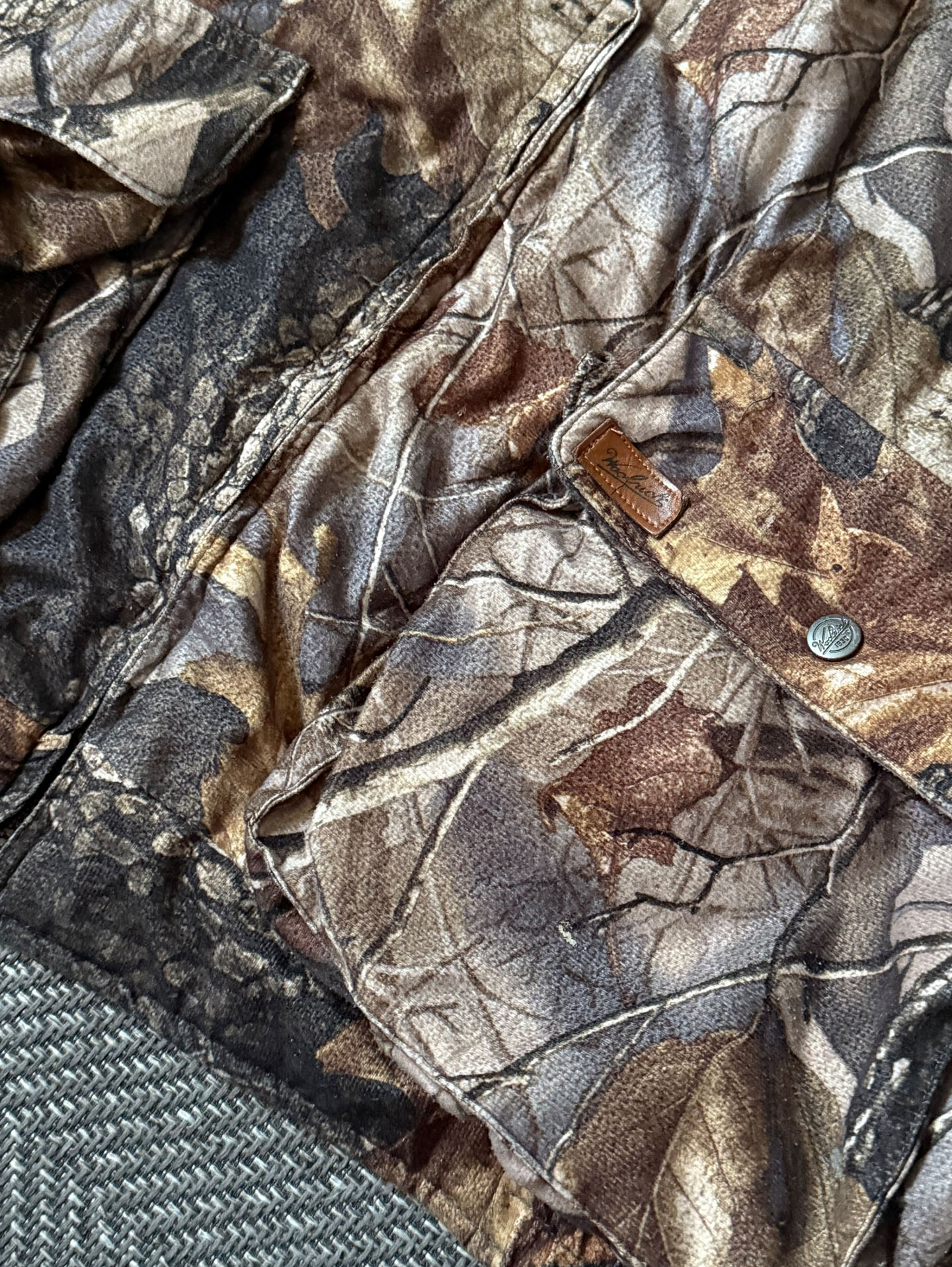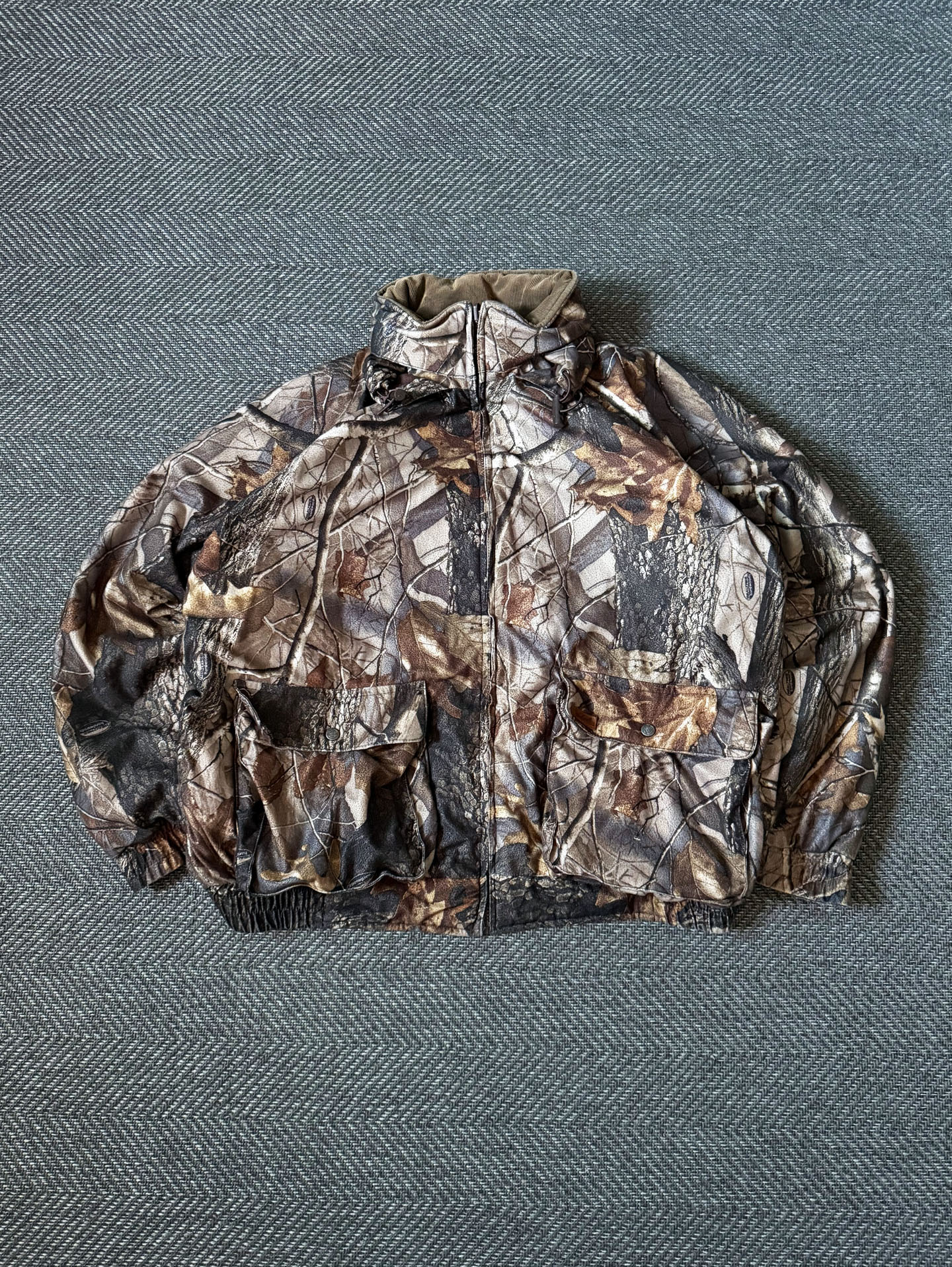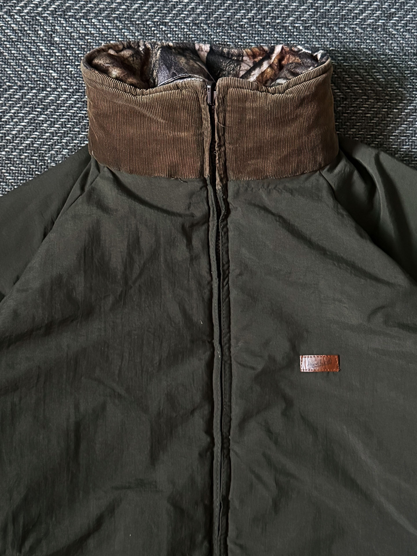 미국 아웃도어 브랜드 Woolrich의 Outdoor Guide Collection 라인에서 출시된 리버시블 자켓입니다. 한쪽은 리얼트리 카모 패턴, 다른 한쪽은 올리브 그린 솔리드 컬러로 구성되어 있습니다.