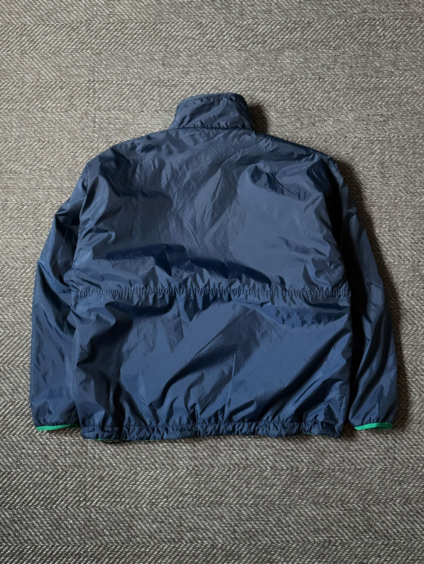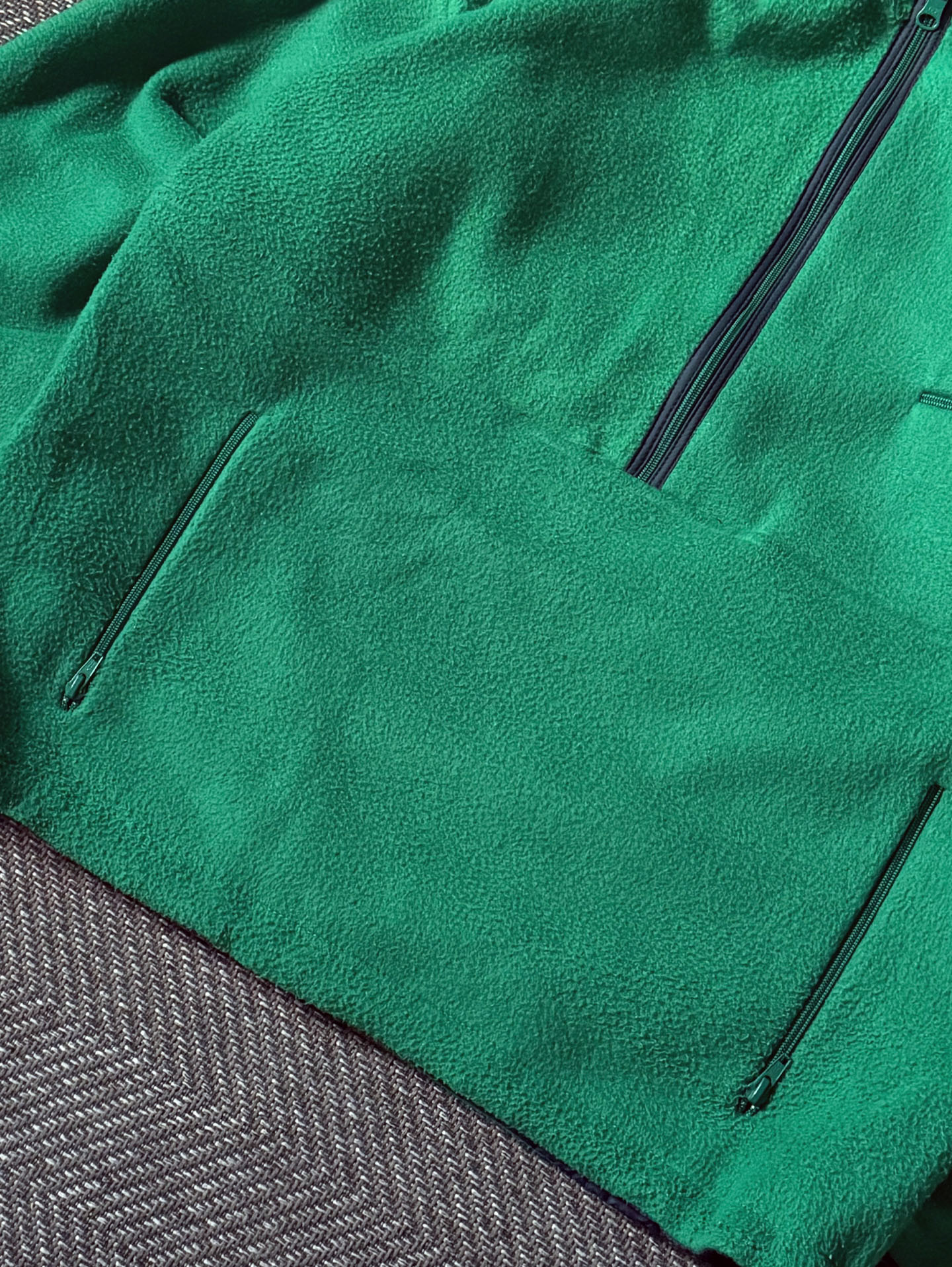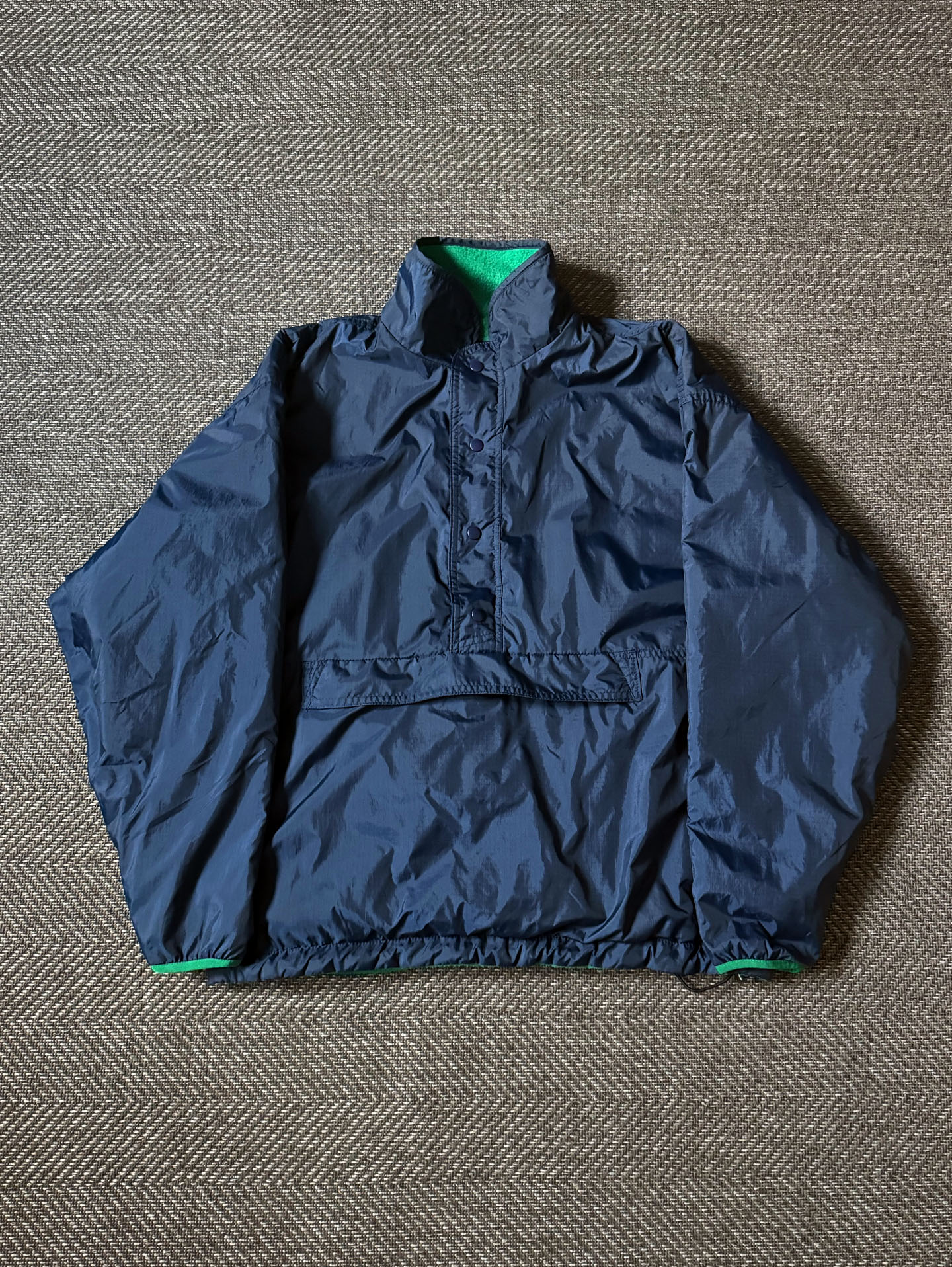 90년대 GAP Arctic Light Active Wear 라인에서 전개된 리버시블 풀오버 제품으로, 당시 파타고니아의 Glissade(글리세이드) 시리즈와 유사한 구조를 갖춘 것이 가장 큰 특징입니다. 한쪽은 네이비 컬러의 나일론 셸로 구성되어 바람을 효과적으로 차단해주는 윈드브레이커 역할을 하며, 반대면은 선명한 그린 컬러의 플리스 소재로 보온성을 극대화한 전형적인 90s 아웃도어 무드를 보여줍니다.