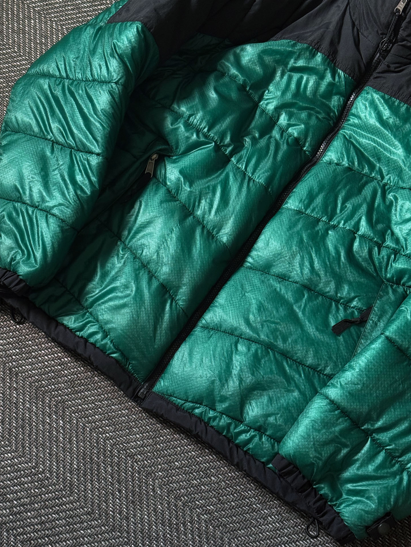 2000년대 중·후반 생산된 THE NORTH FACE 인슐레이션 패딩 자켓입니다. 노스페이스 특유의 클래식한 블랙 & 그린 투톤 컬러 조합이 돋보이는 제품으로, 당시 아웃도어 라인업에서 전개되던 누프시(Nuptse) 스타일 계열의 패딩 실루엣을 기반으로 제작된 모델입니다.